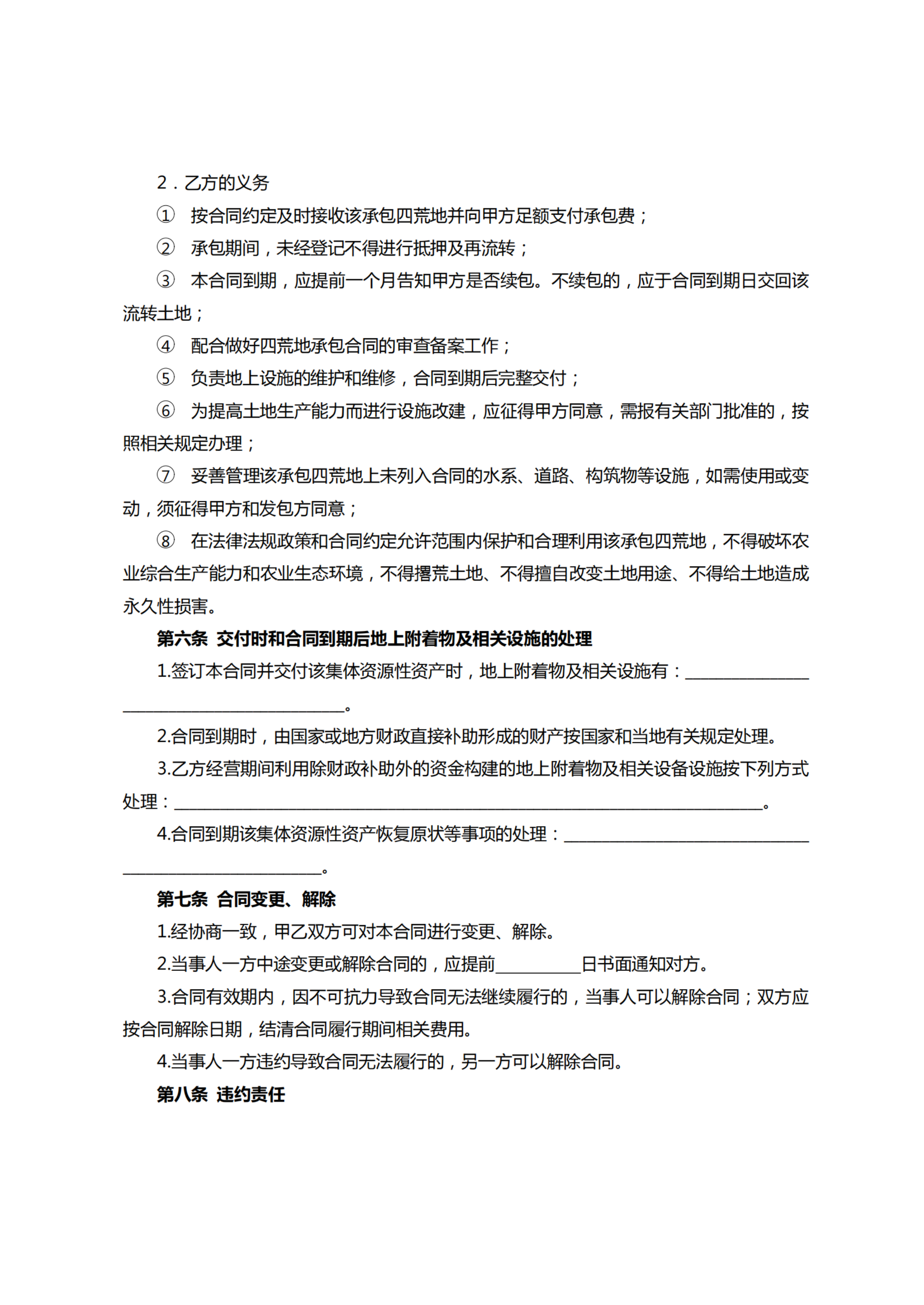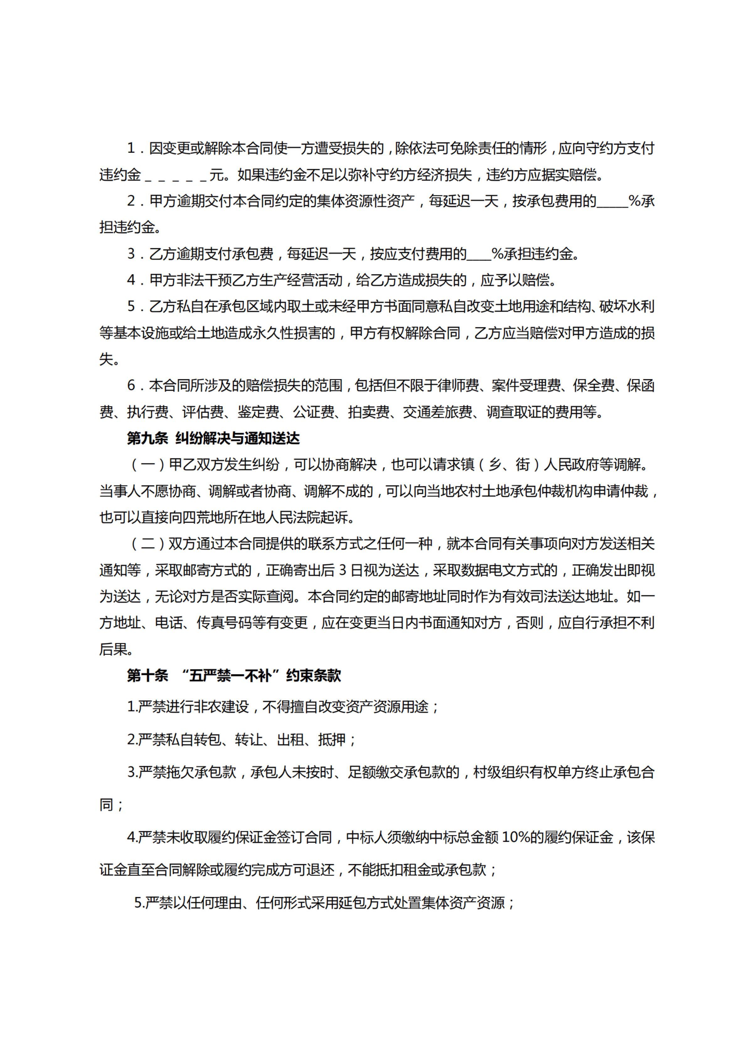 3.严禁拖欠承包款,承包人未按时、足额缴交承包款的,村级组织有权单方终止承包合同;