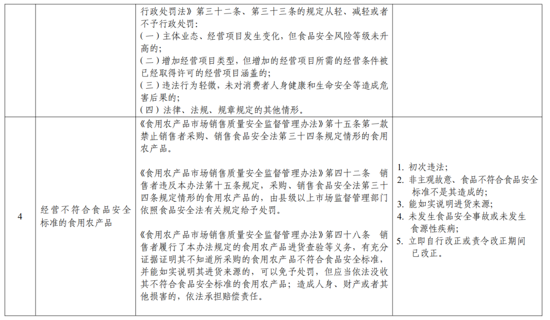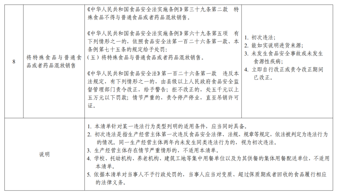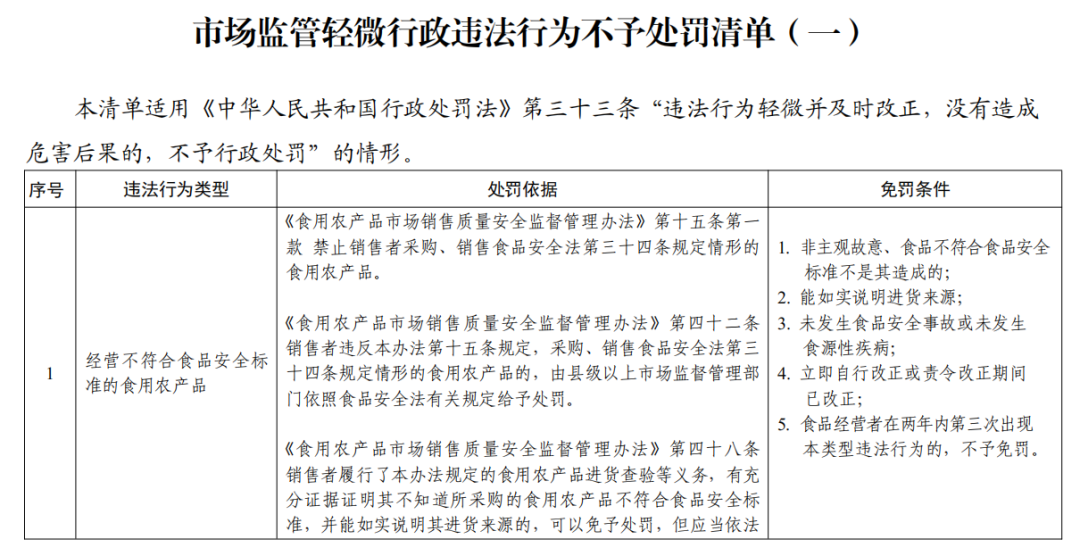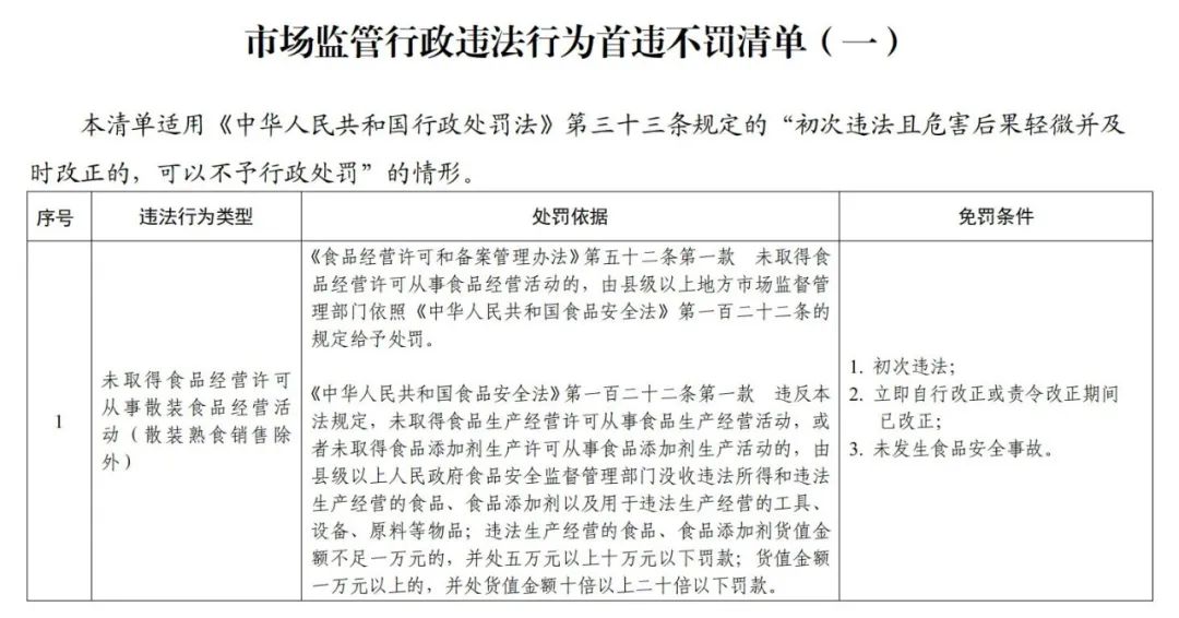 在充分考虑违法行为危害后果、当事人主观过错和获利情况的基础上,市场监管总局制定清单对12种首次违法和轻微违法行为不予处罚。其中,“首违不罚清单”包含8种初次违法,且危害后果轻微并及时改正的违法行为;“轻微免罚清单”包含4种违法行为轻微并及时改正,且没有造成危害后果的违法行为。