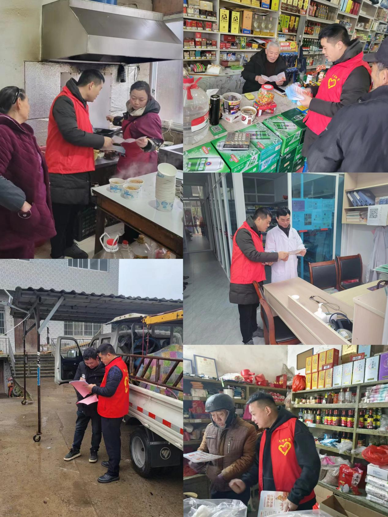 在狮子街道临街商铺与老百姓的家中可以看到新时代文明实践志愿者们忙碌的身影,“红马甲”们走街串巷,到“九小场所”与群众家中进行面对面的宣传,为寒冬增添了一丝暖意。