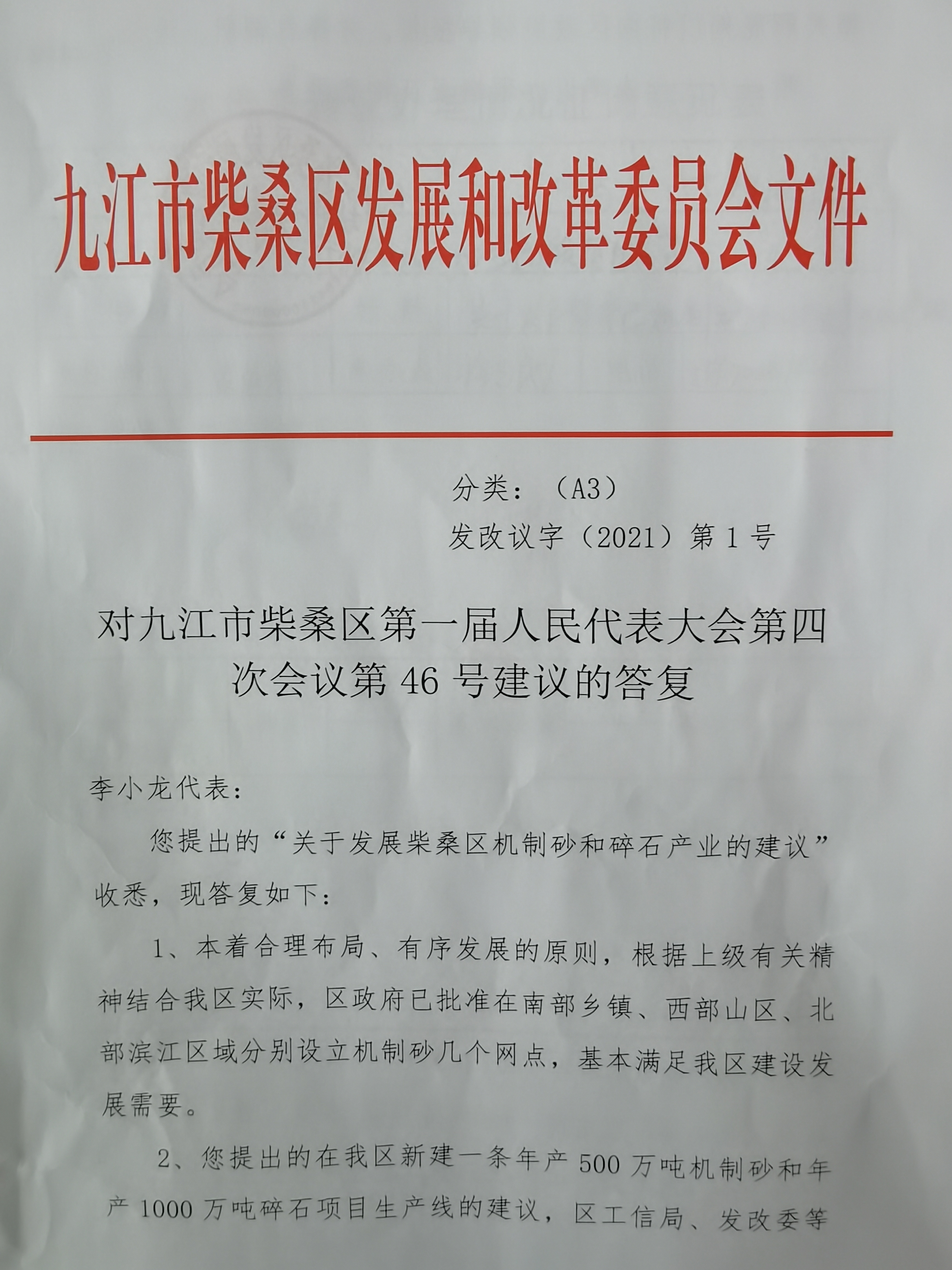 对九江市柴桑区第一届人民代表大会第四次会议第46号建议的答复