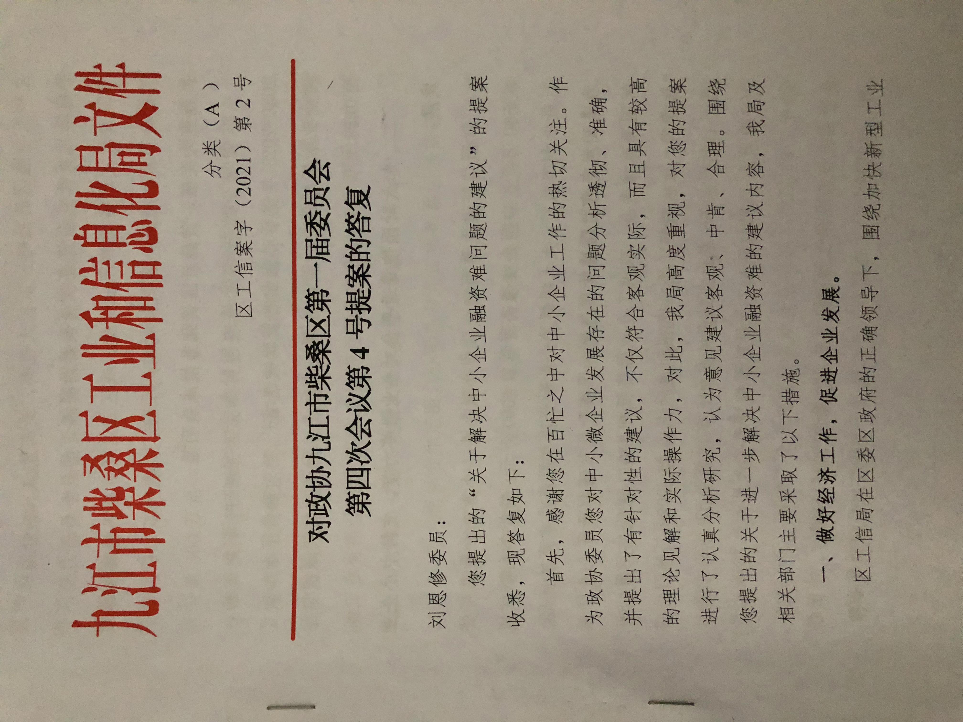 对政协九江市柴桑区第一届委员会第四次会议第4号提案的答复