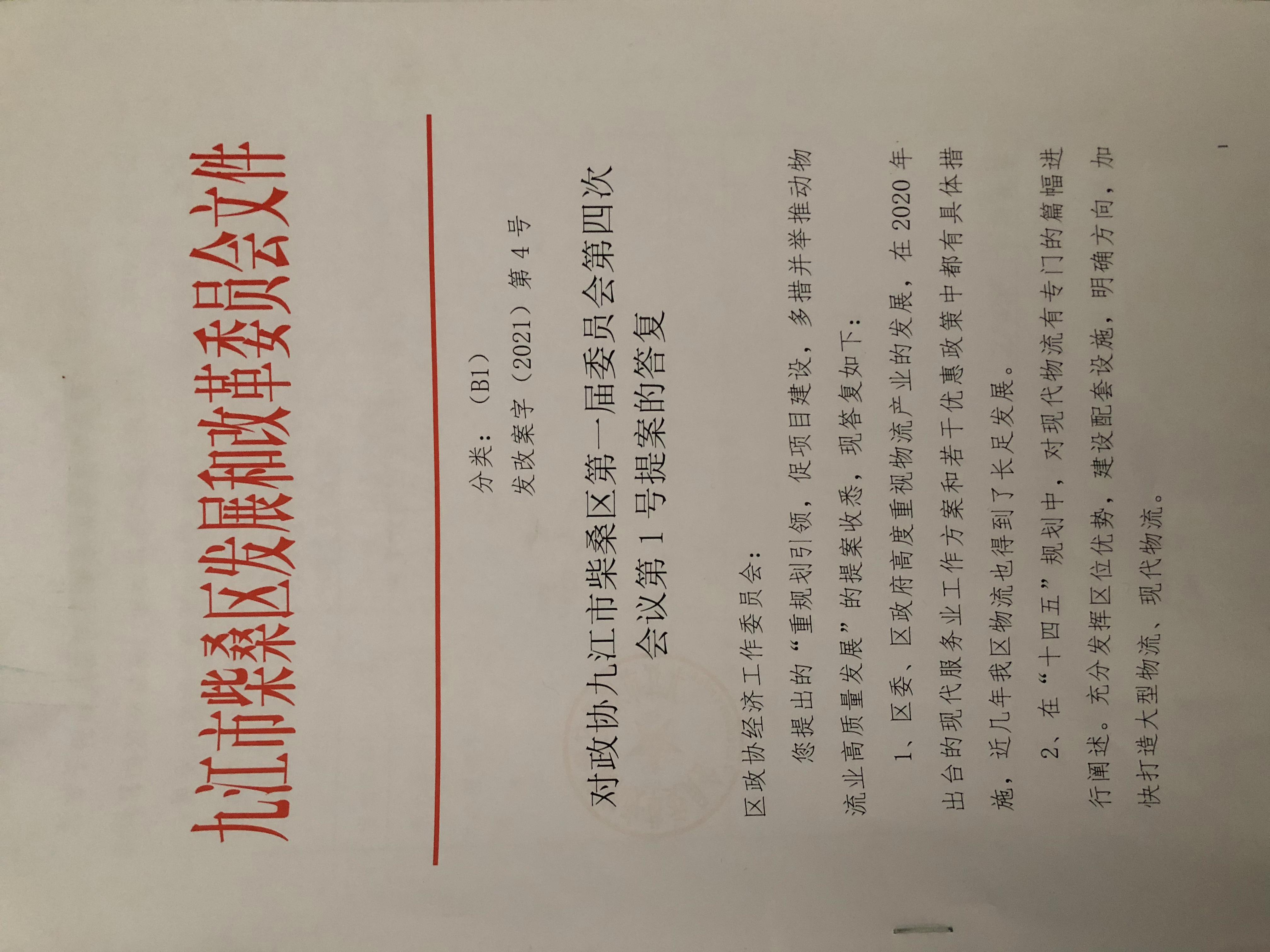 对政协九江市柴桑区第一届委员会第四次会议第1号提案的答复