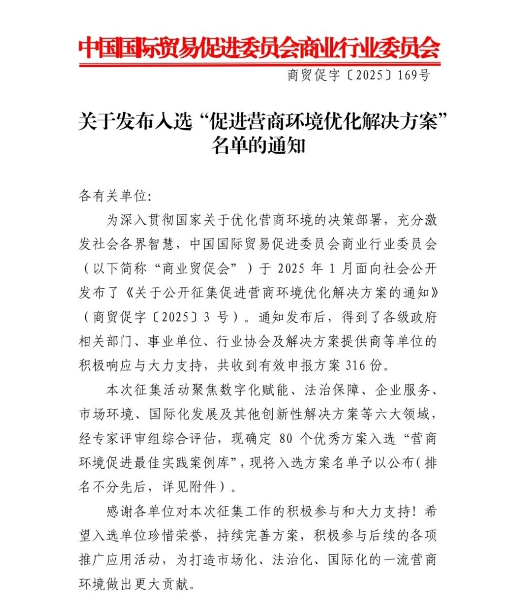 促进营商环境优化解决方案是中国贸促会商业行业委员会为深入贯彻国家关于优化营商环境的决策部署,进一步推动创新性解决方案在全国范围内的推广与实践,面向社会公开征集促进营商环境优化的解决方案,旨在汇聚社会各界智慧、凝聚共识,探索市场化、法治化、国际化的最佳营商环境建设路径。