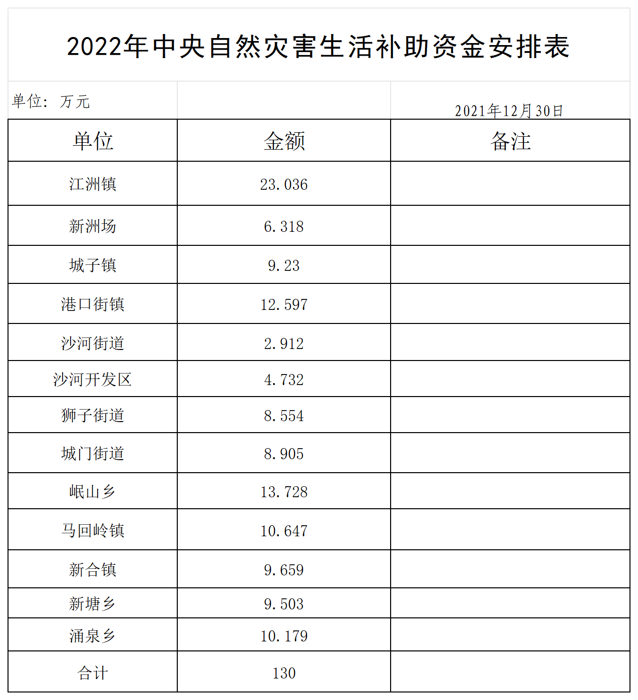关于下达2022年中央自然灾害生活补助资金的通知