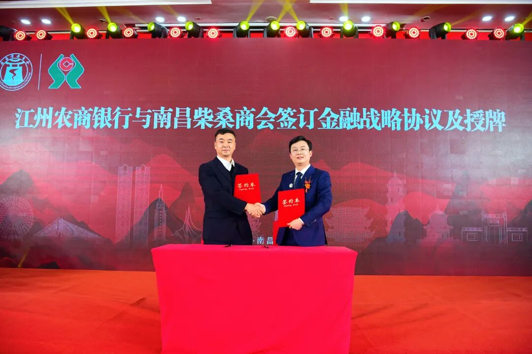 会上,陈世勇为南昌柴桑商会揭牌;盛炜等与会领导为商会新当选理事会成员授牌;盛炜为商会新任会长、秘书长发招商顾问、招商专员聘书;张铁虎为商会授“招商引资”牌匾;杜方乔为商会授“招才 引智”牌匾;侯毅周作招商推介;南昌柴桑商会新任会长何涛进行了就职发言;南昌柴桑商会举行了爱心基金成立及揭牌仪式;江州农商行与南昌柴桑商会签订战略协议及授牌。