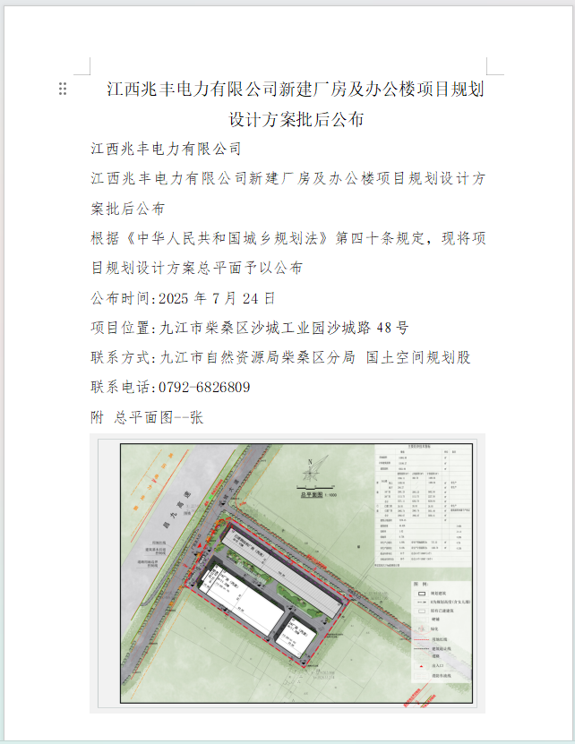 江西兆丰电力有限公司新建厂房及办公楼项目规划设计方案批后公布