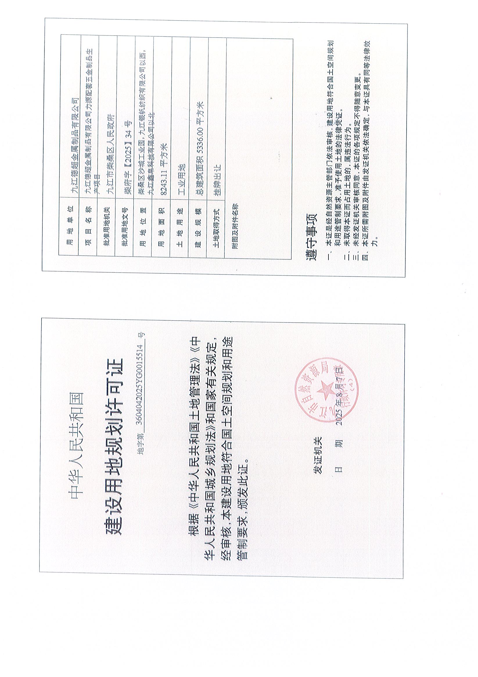 九江德超金属制品有限公司力源配套五金制品生产项目建设用地规划许可证批准结果公示