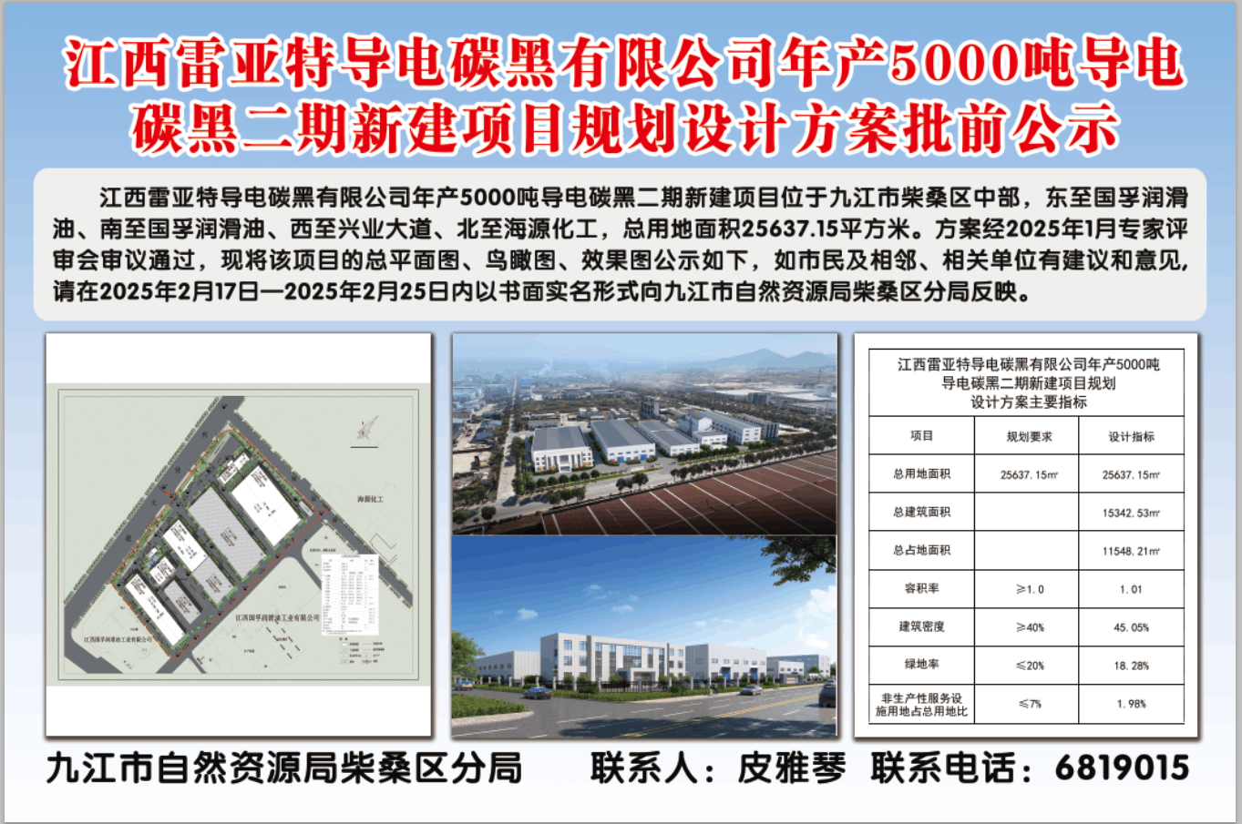 江西雷亚特导电碳黑有限公司年产5000吨导电碳黑二期新建项目规划设计方案批前公示