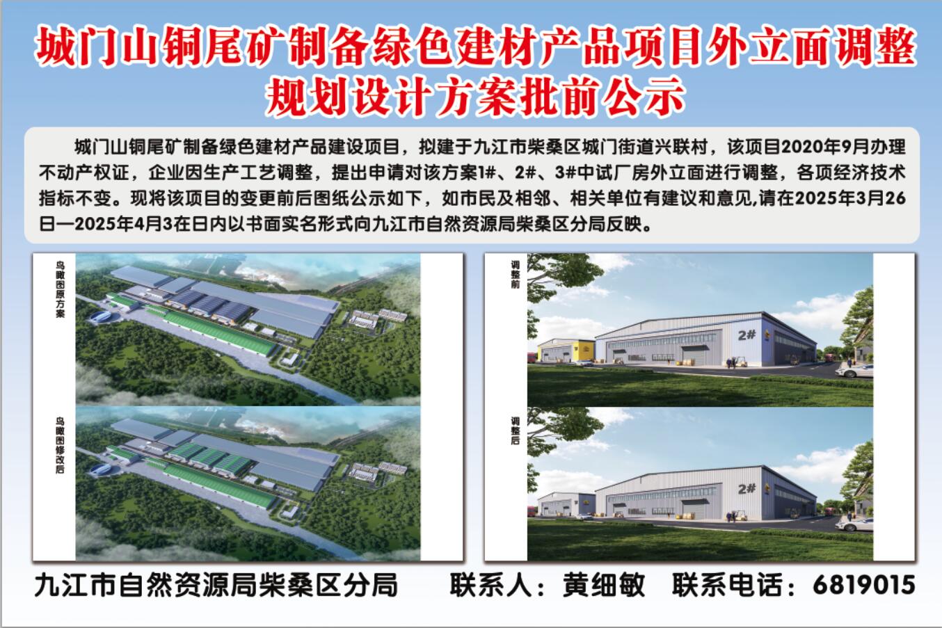 城门山铜尾矿制备绿色建材产品项目外立面调整规划设计方案批前公示