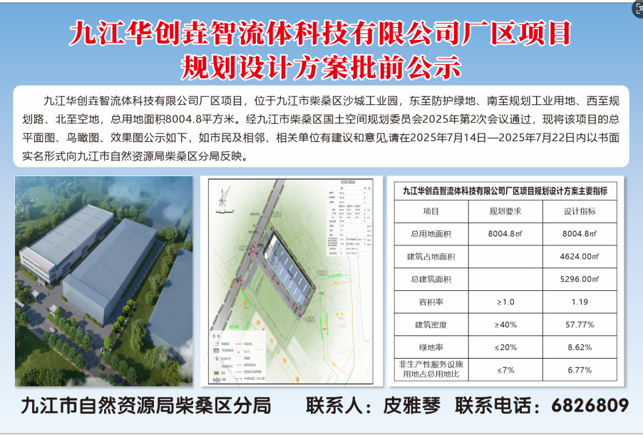 九江华创垚智流体科技有限公司厂区项目规划设计方案批前公示