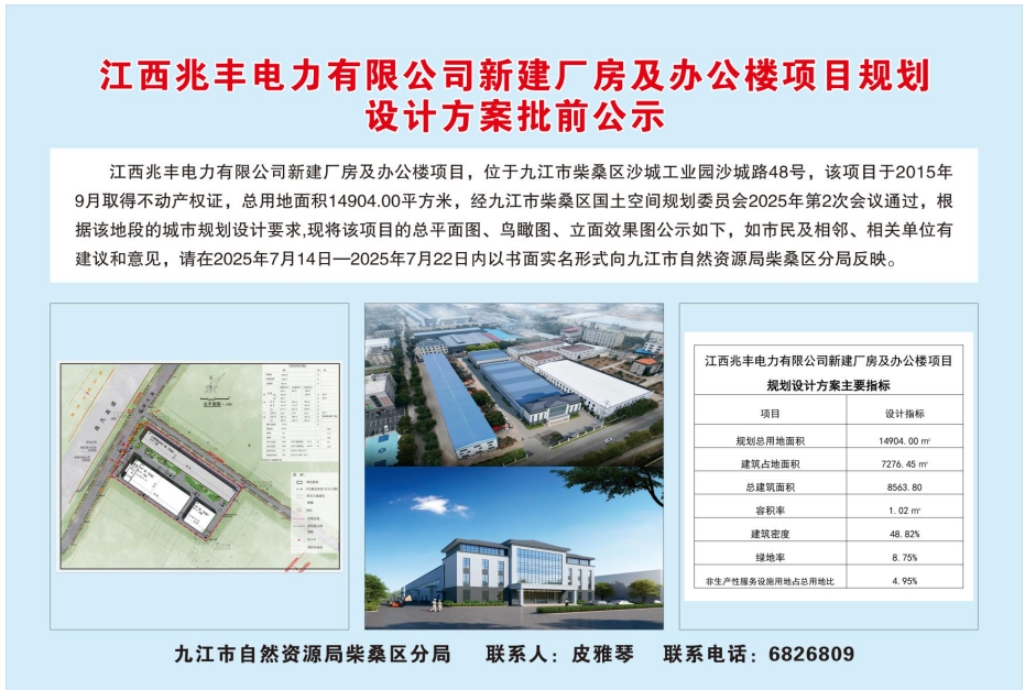 江西兆丰电力有限公司新建厂房及办公楼项目规划设计方案批前公示