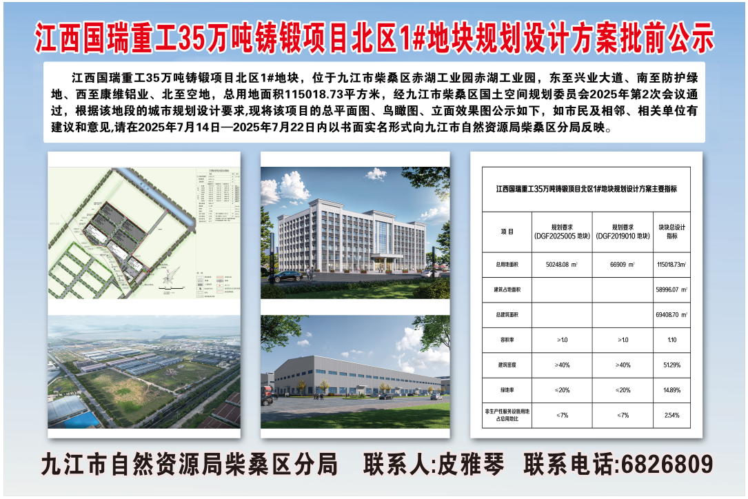 江西国瑞重工35万吨铸锻项目北区1#地块规划设计方案批前公示