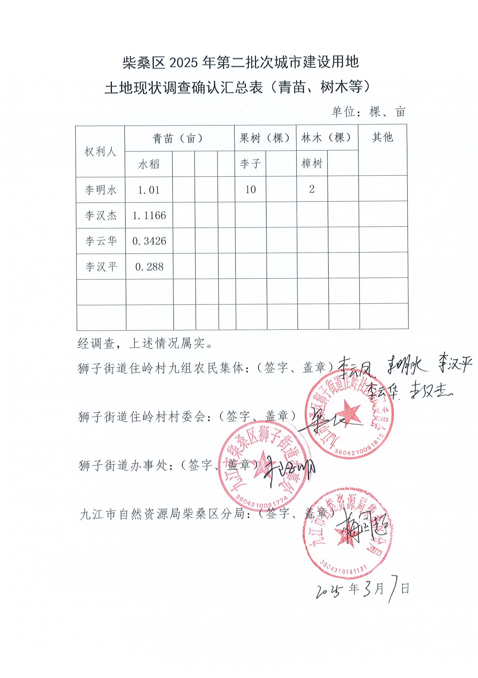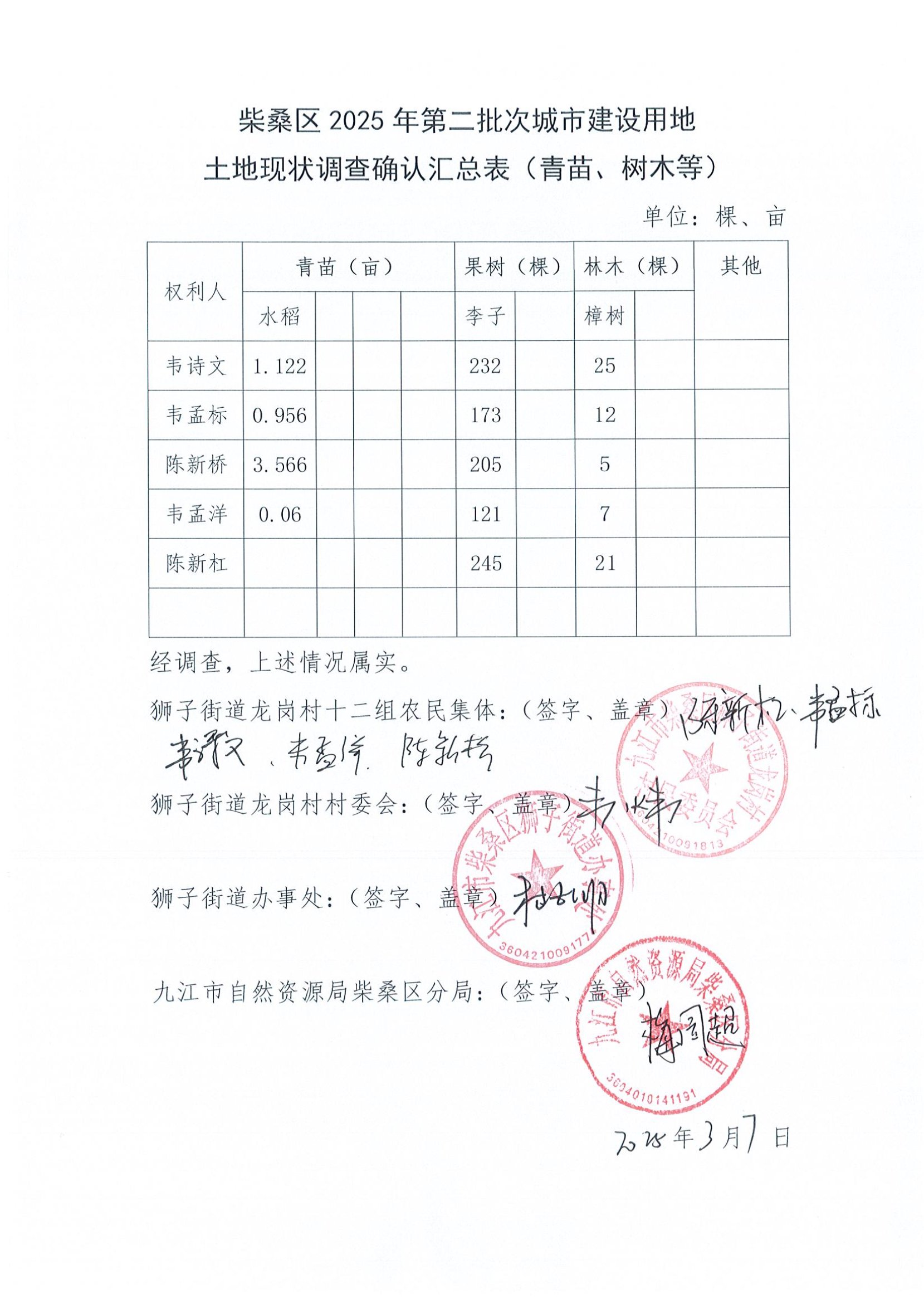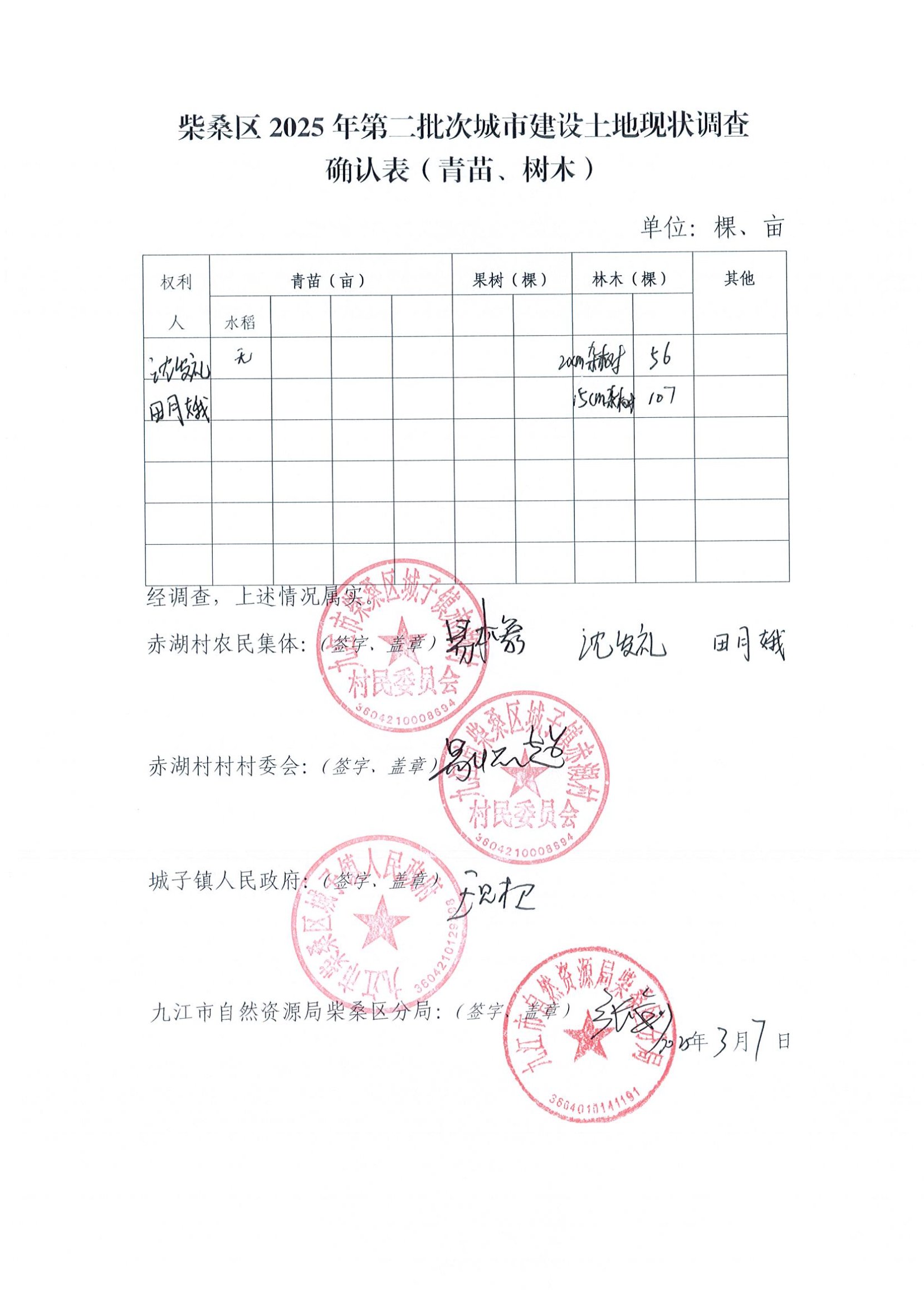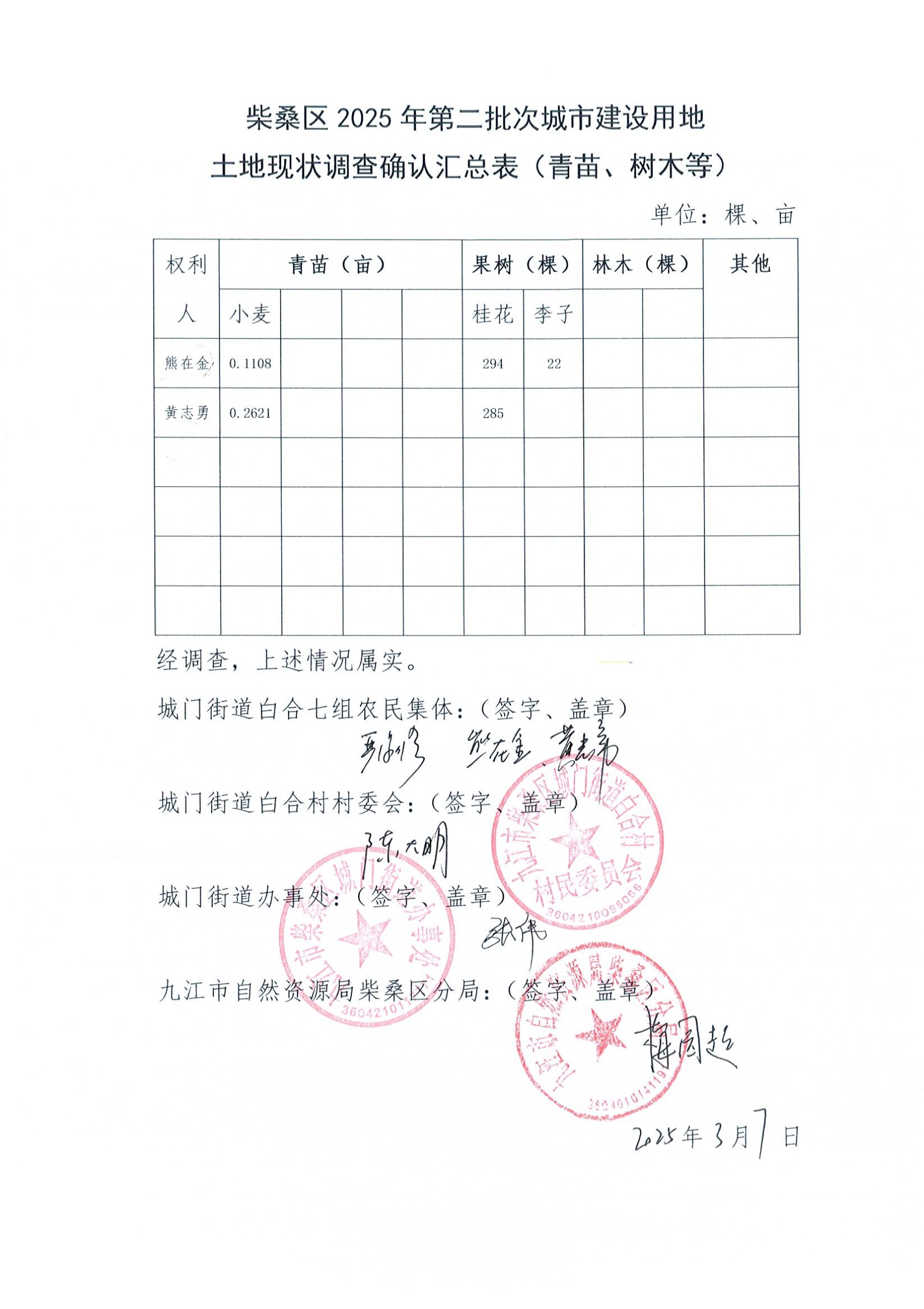 柴桑区2025年第二批次城市建设用地地现状调查确认汇总表(青苗、树木等)