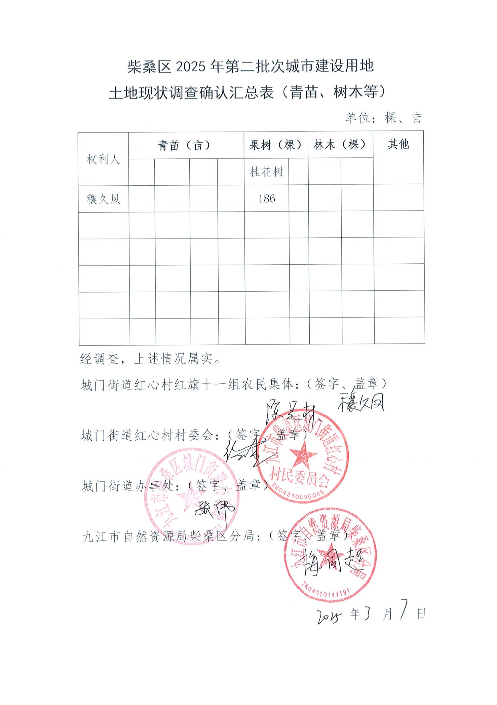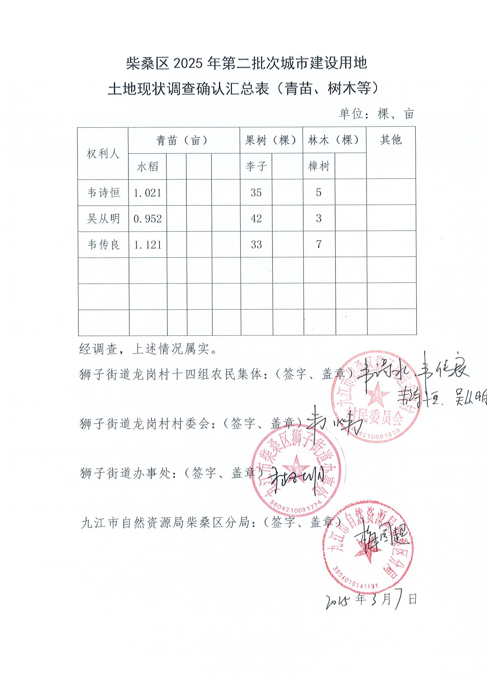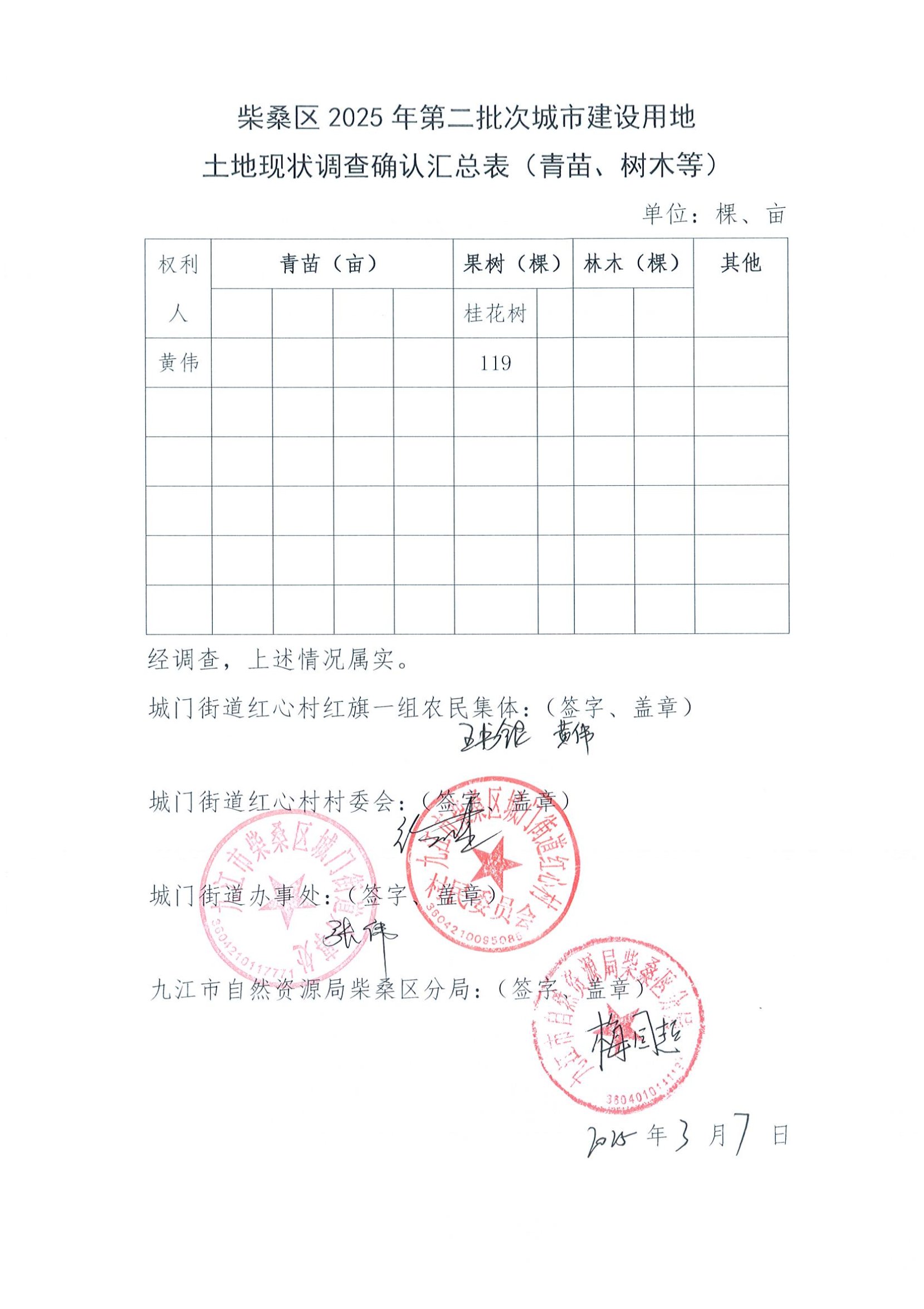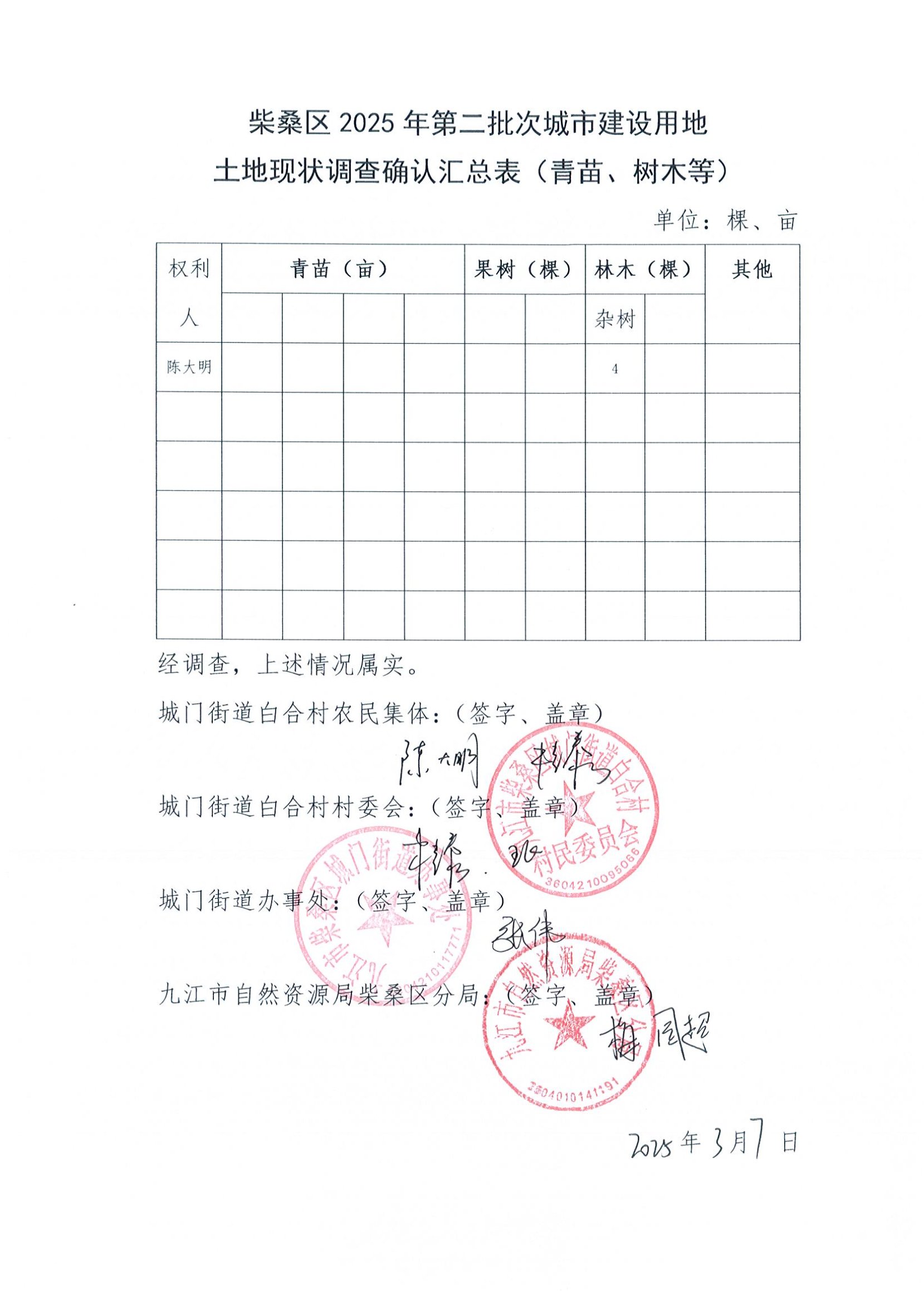 柴桑区2025年第二批次城市建设用地地现状调查确认汇总表(青苗、树木等)