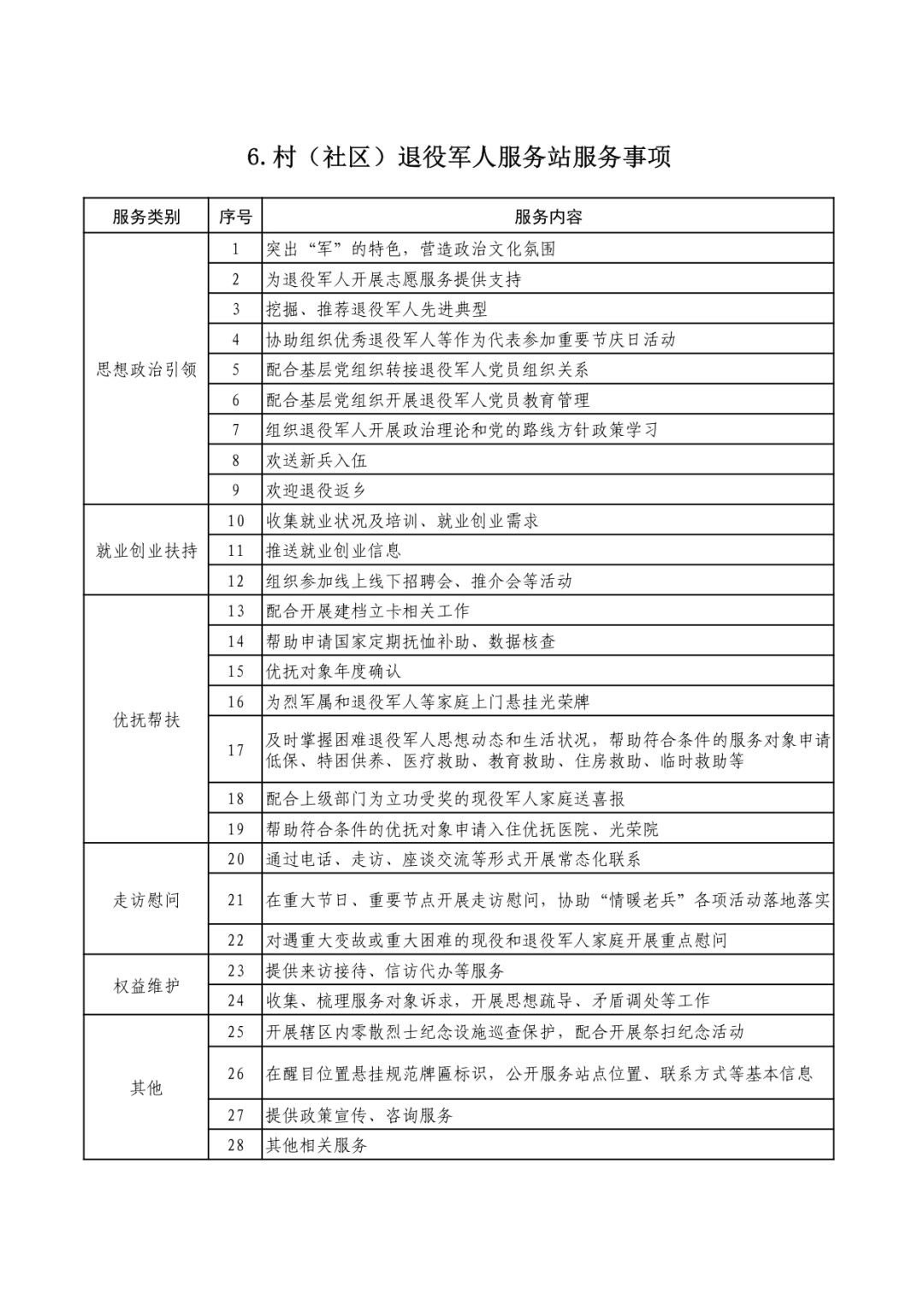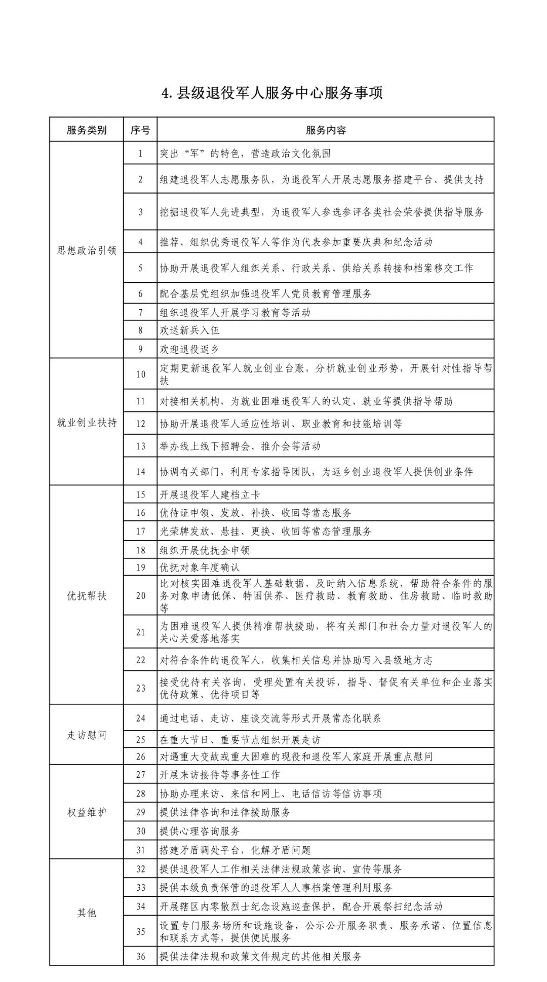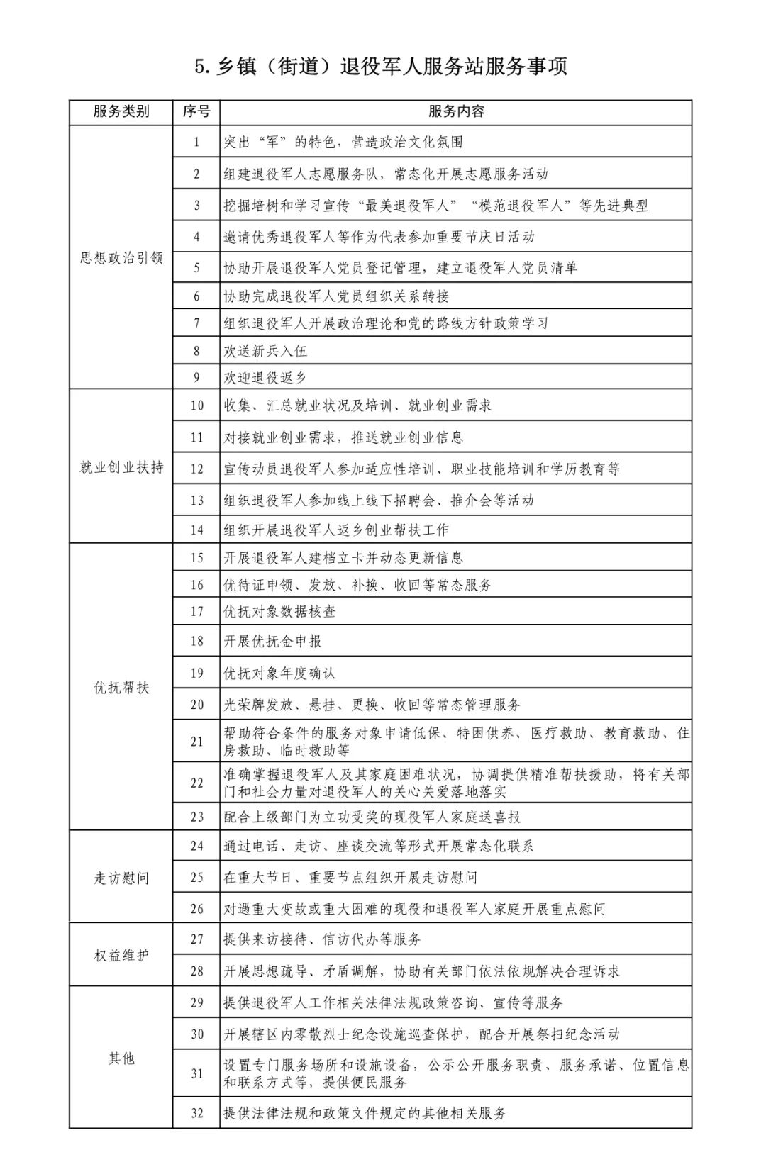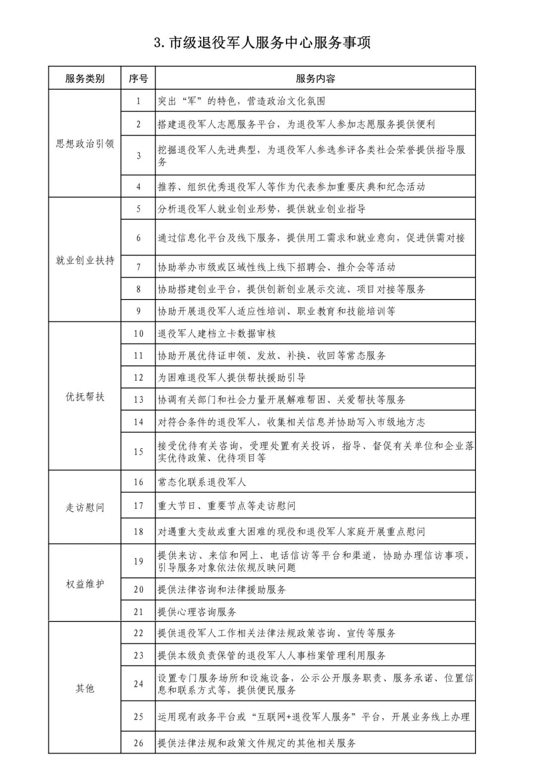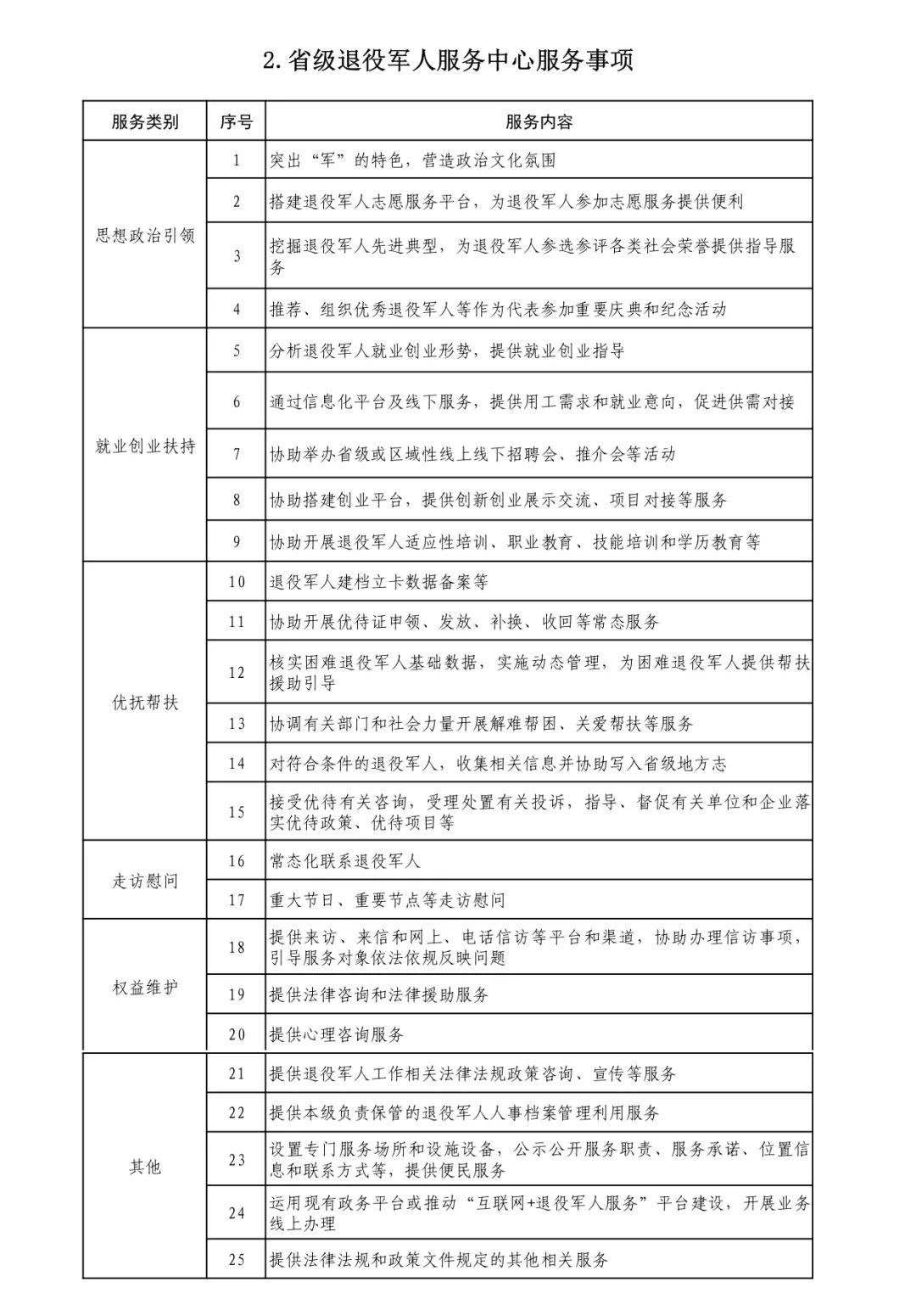 退役军人事务部办公厅印发《各级退役军人服务中心(站)服务清单》