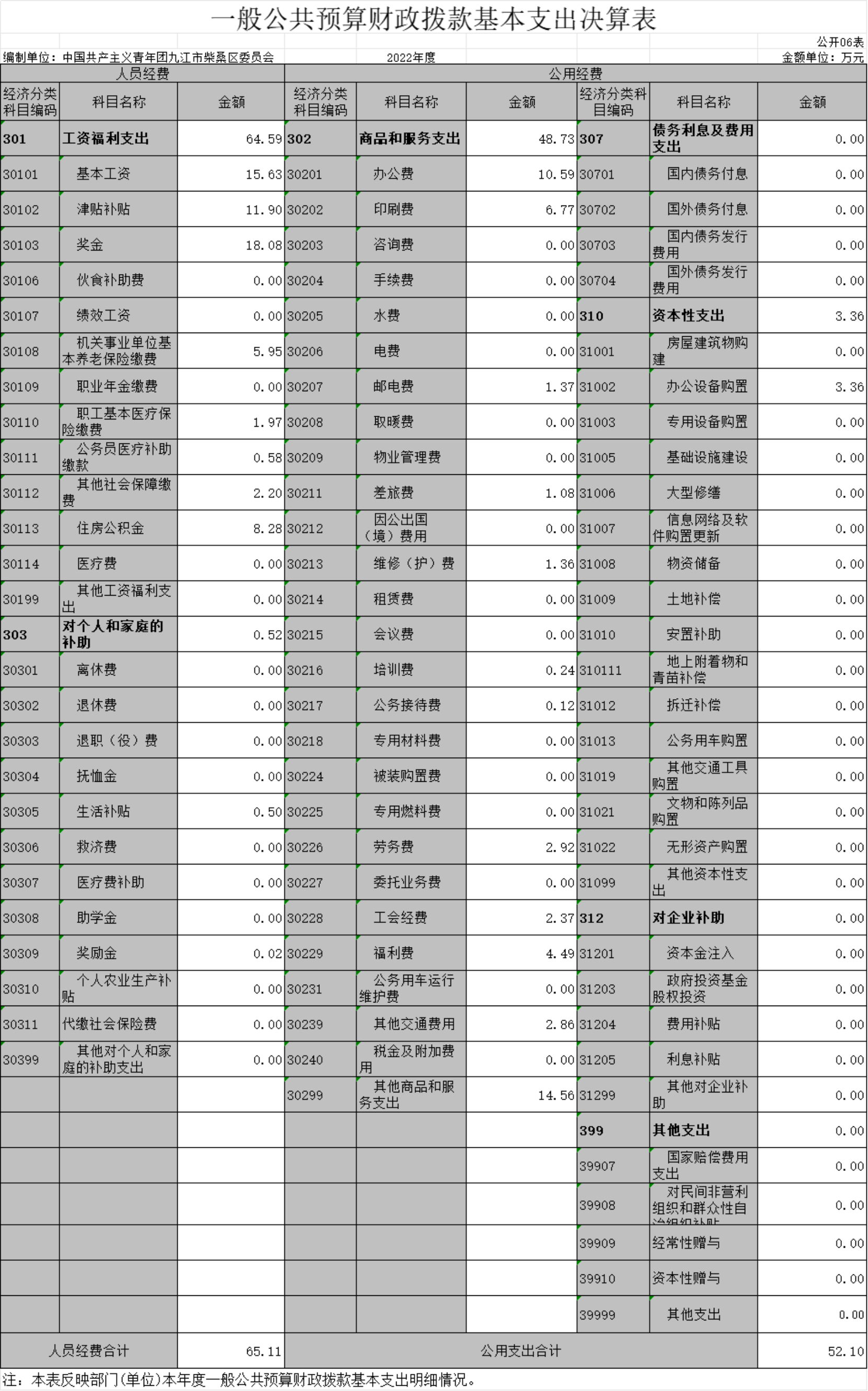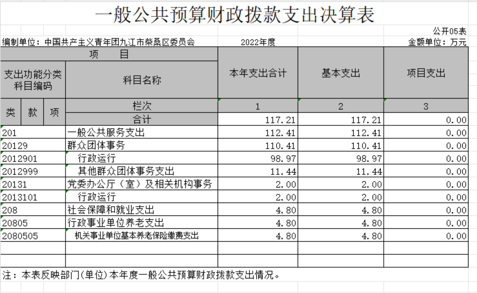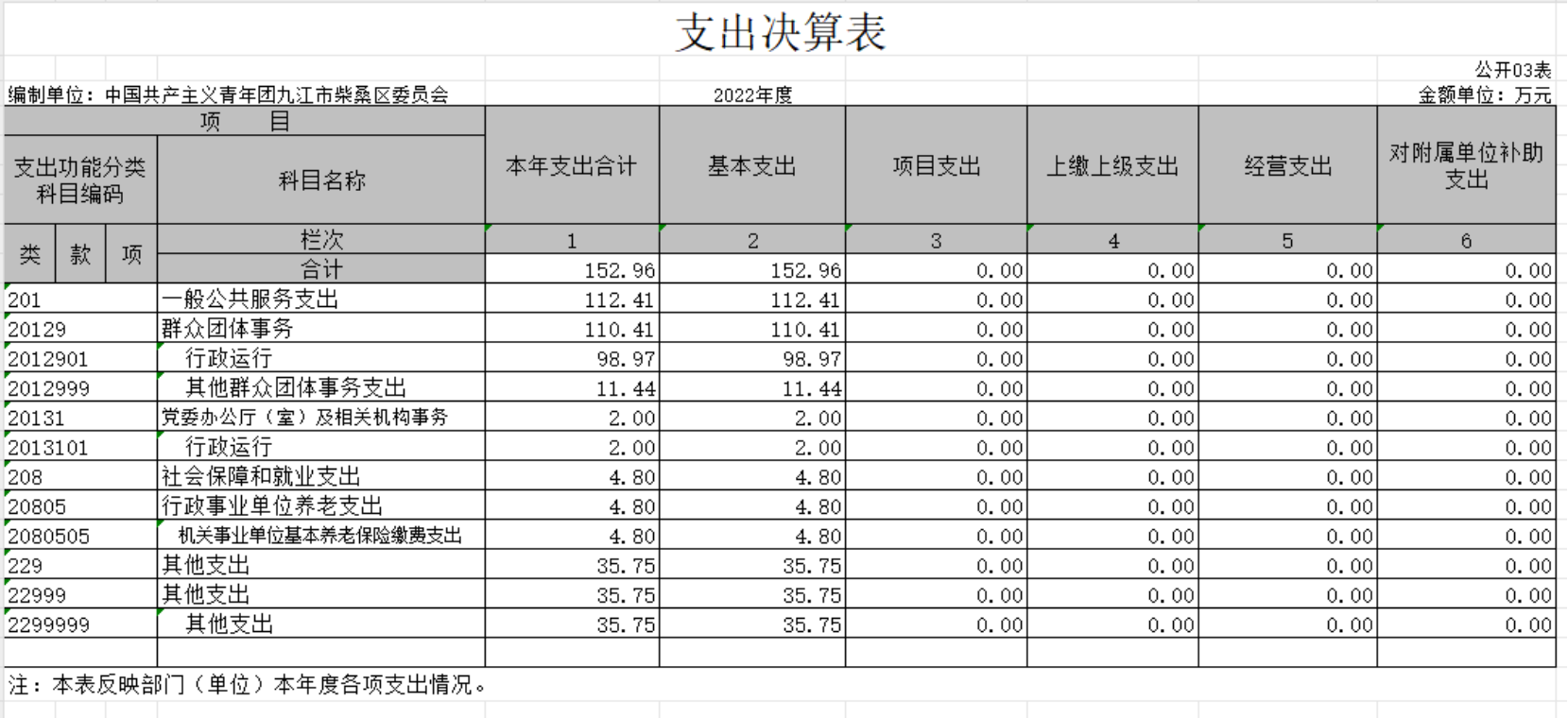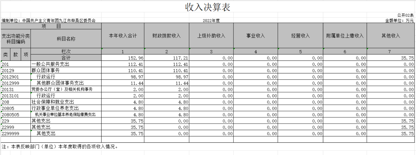 中国共产主义青年团九江市柴桑区委员会2022年度决算公开