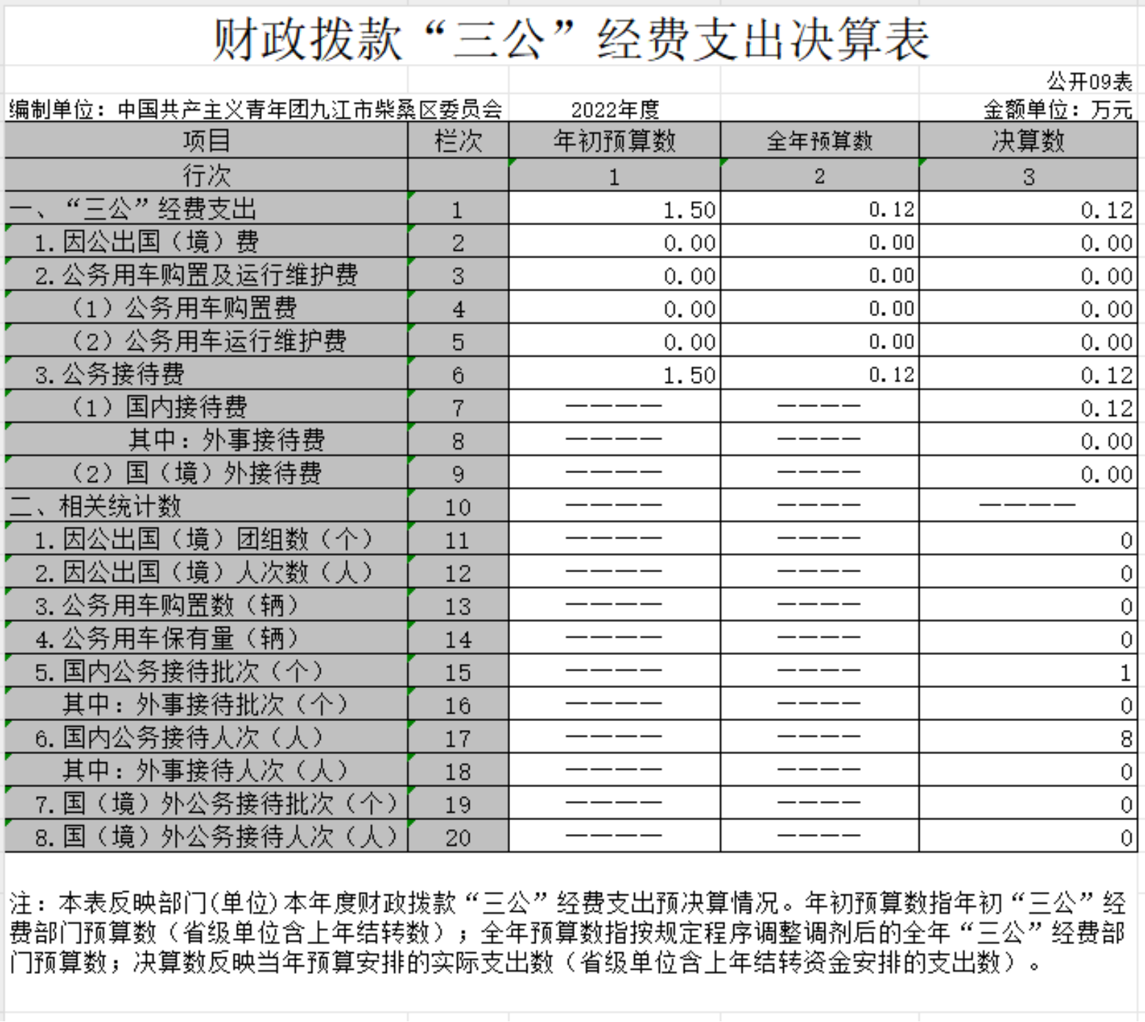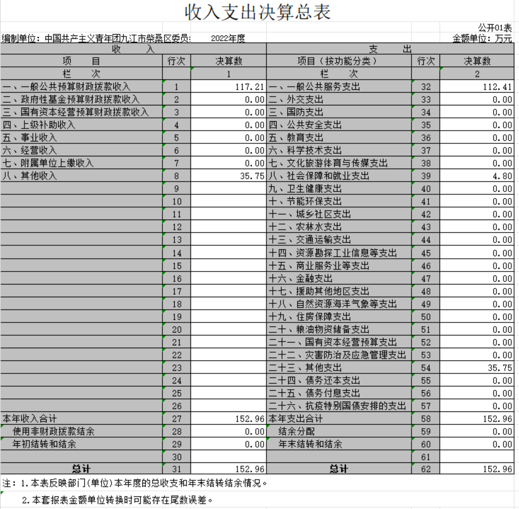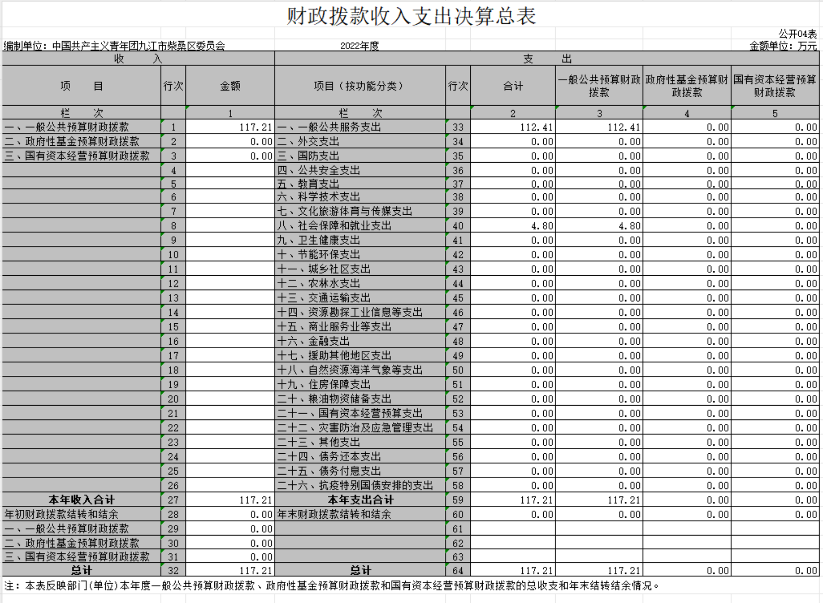 中国共产主义青年团九江市柴桑区委员会2022年度决算公开