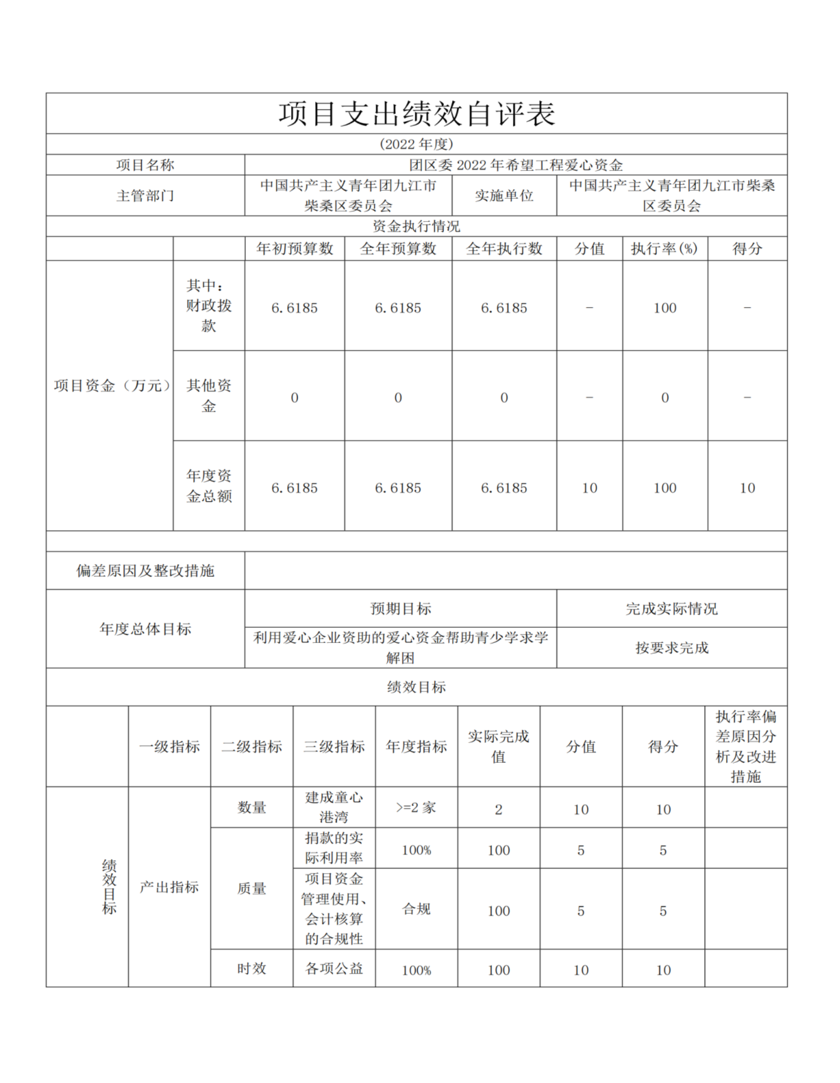本部门公开“团区委2022年希望工程爱心资金”项目部门评价报告(见附件)。