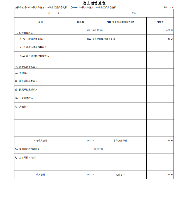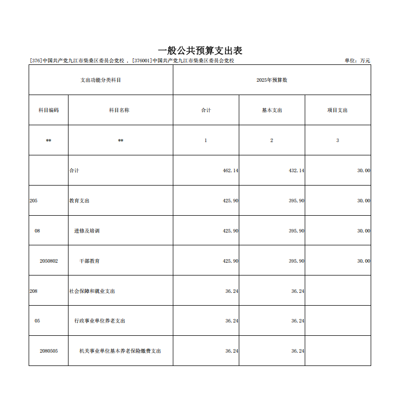 2025年区委党校部门支出预算总额为支出预算总额为462.14万元,较上年预算安排增加(减少)_56.19万元;其中: