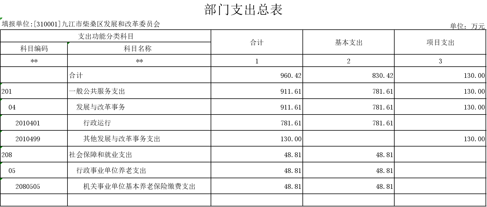 2024年柴桑区发展和改革委员会单位支出预算总额为支出预算总额为_960.42万元,较上年预算安排增加245.12万元;其中: