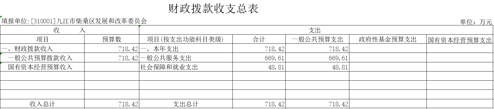 2024年柴桑区发展和改革委员会单位财政拨款支出预算总额为718.42万元,较上年预算安排增加_3.12万元;