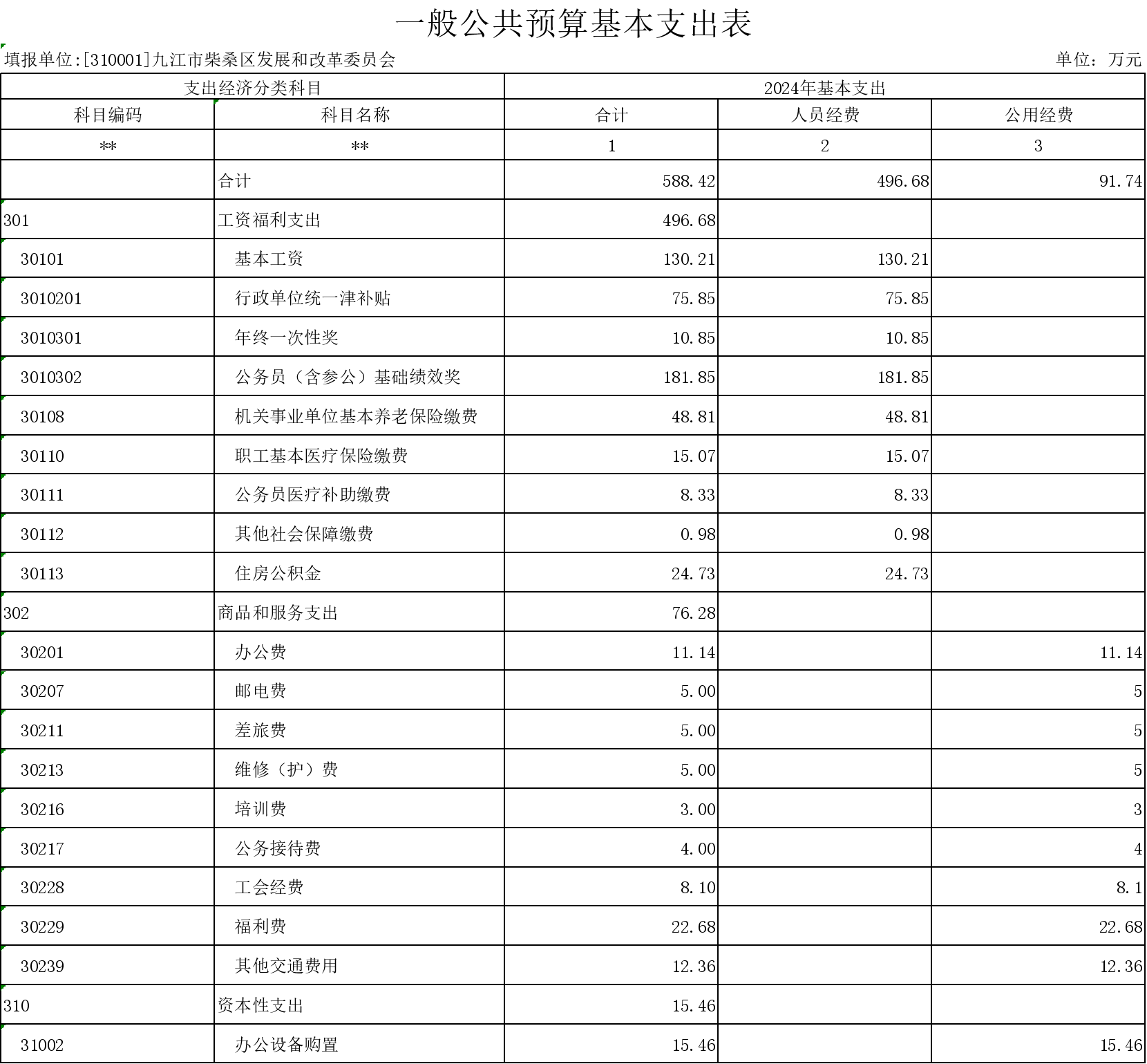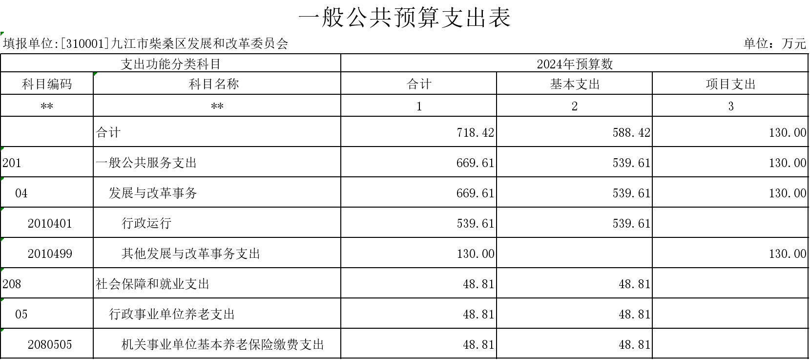 第二部分 柴桑区发展和改革委员会2024年单位预算表