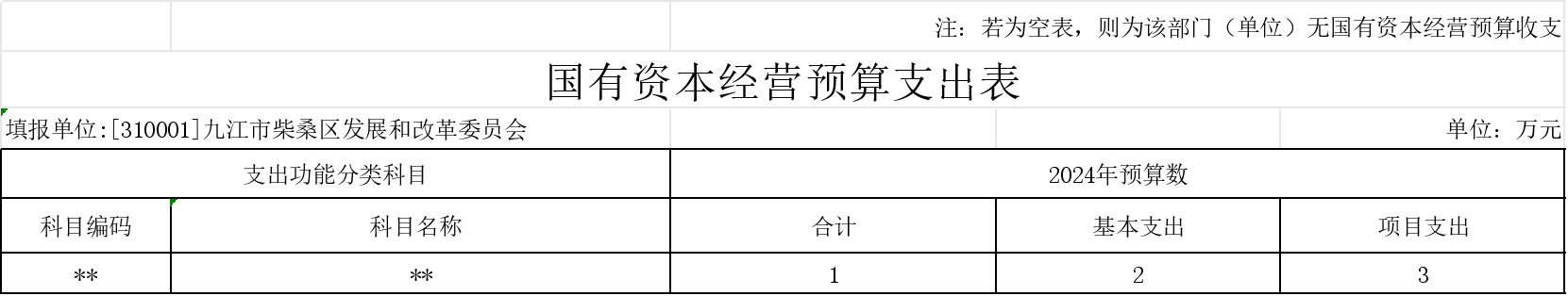2024年柴桑区发展和改革委员会单位国有资本经营收入预算为_0万元,支出预算为0万元,其中:基本支出0_万元,项目支出_0_万元。(本单位没有使用国有资本经营预算拨款安排的支出)