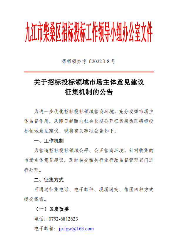 关于招标投标领域市场主体意见建议 征集机制的公告