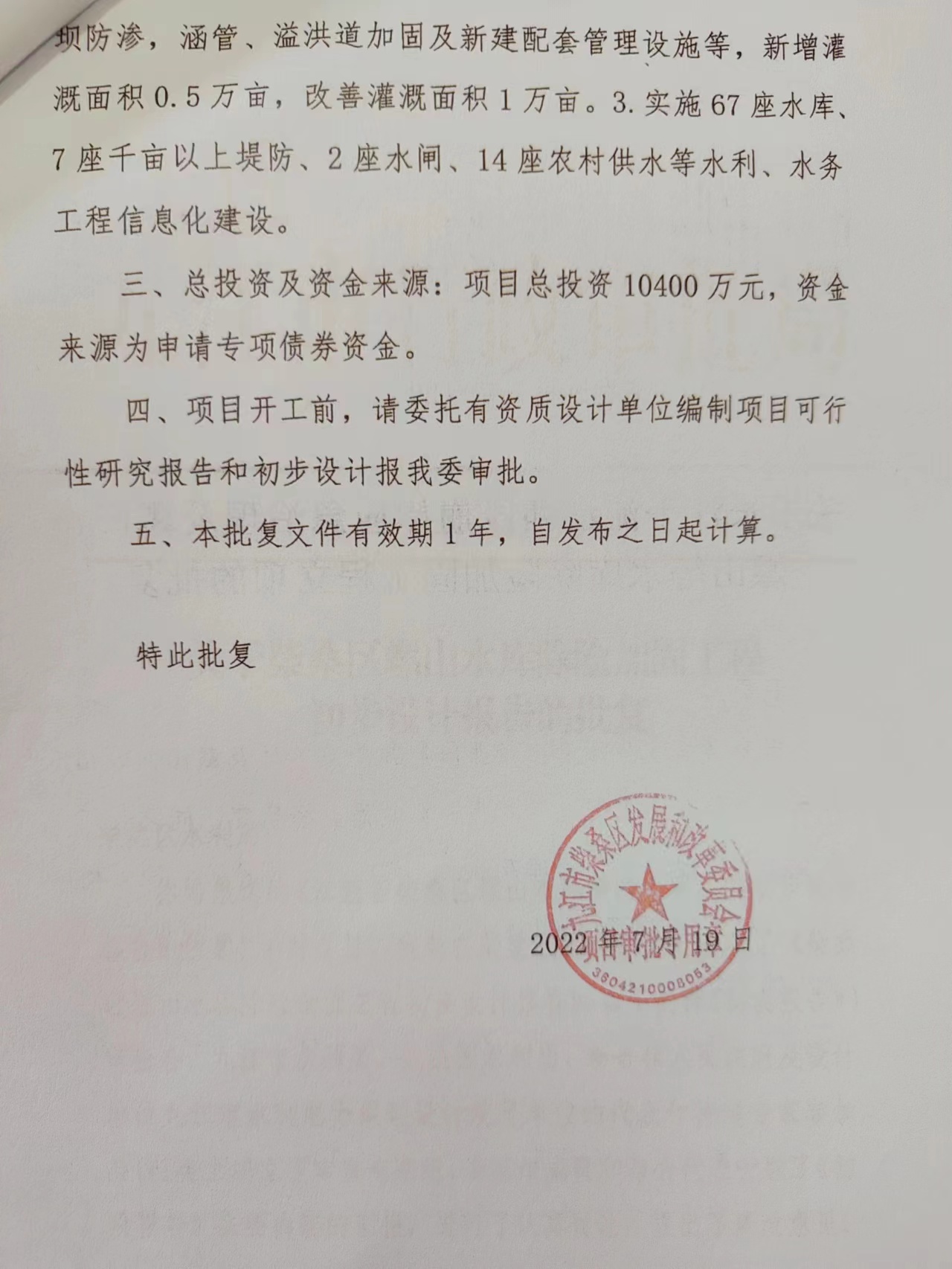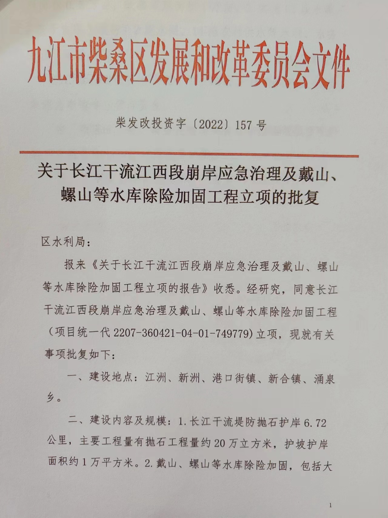 柴桑区螺山水库除险加固工程招标事项核准书及立项批复