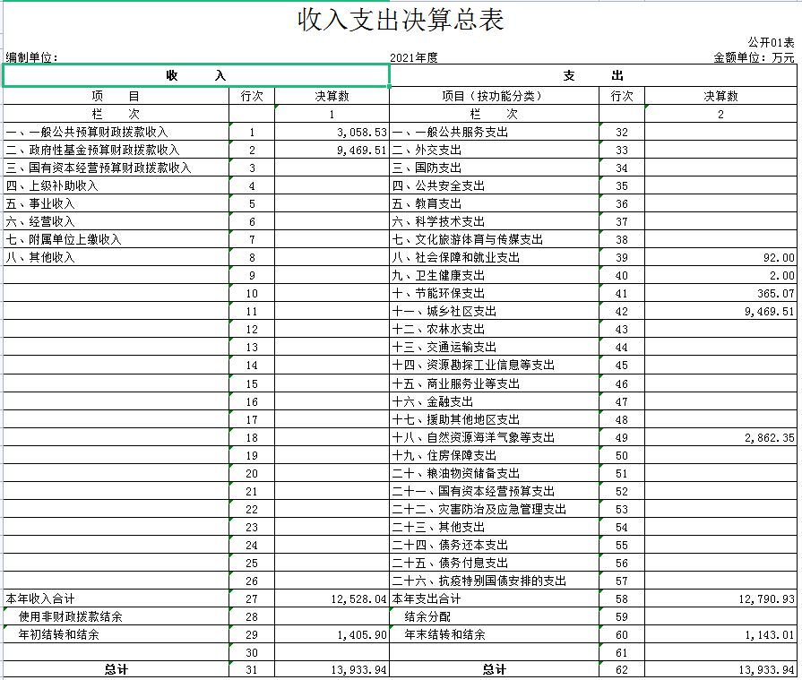 本部门2021年度收入总计13933.94万元,其中年初结转和结余1405.9万元,较2020年减少50561.66万元,下降77.8%;本年收入合计12528.04万元,较2020年减少51156.26万元,下降80.3%,主要原因是:区政府土地收储项目费用较上年有所减少。