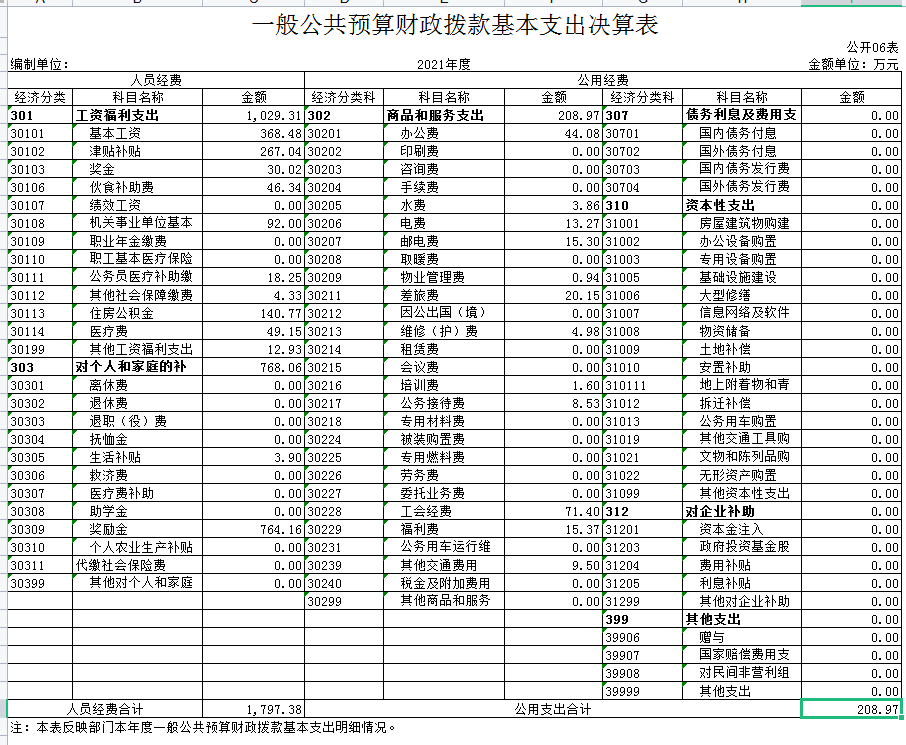 本部门2021年度一般公共预算财政拨款基本支出1797.38万元,其中: