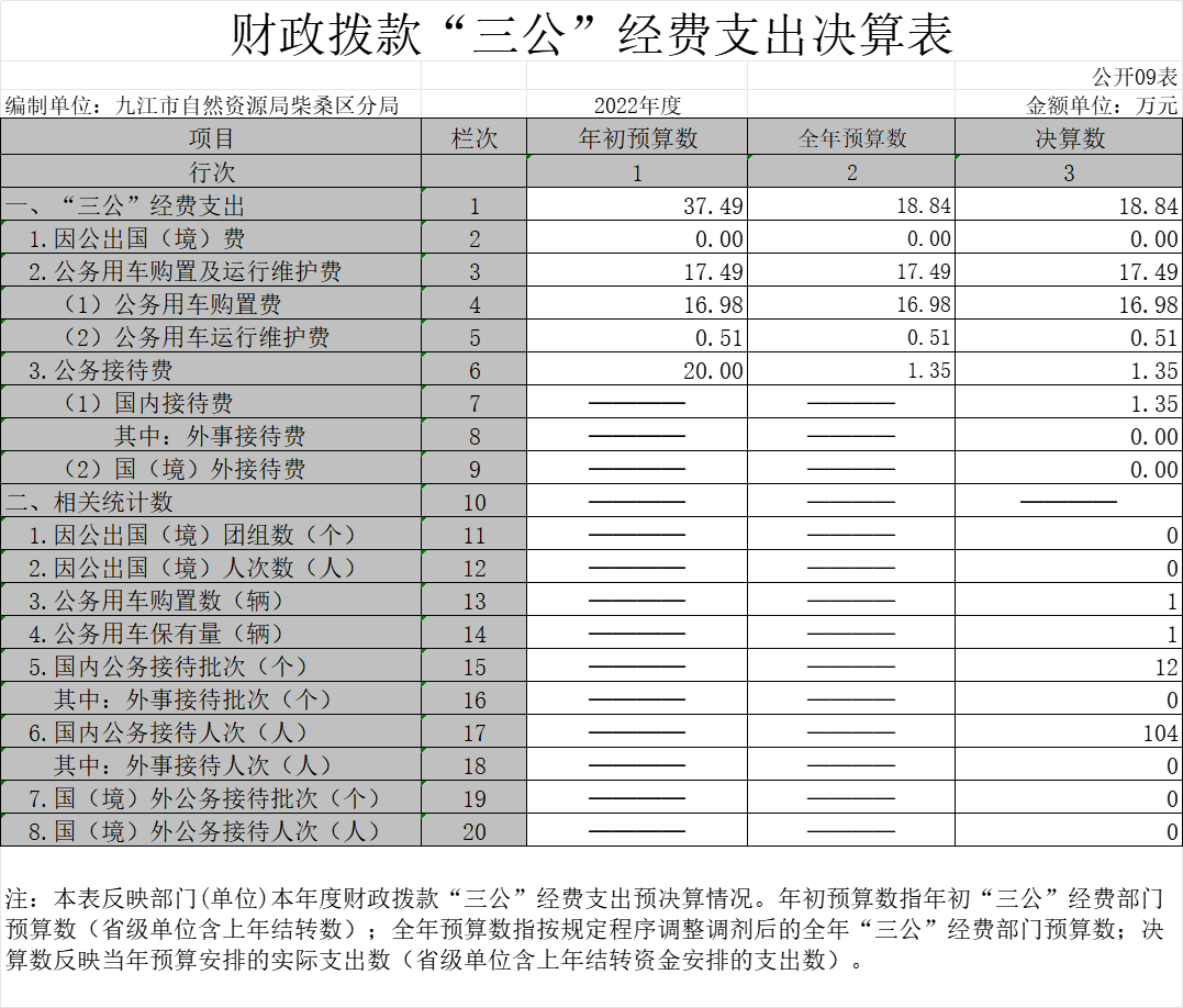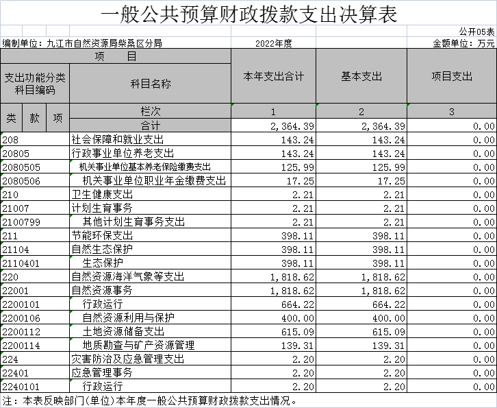 九江市自然资源局柴桑区分局2022年度部门决算(含三公经费)