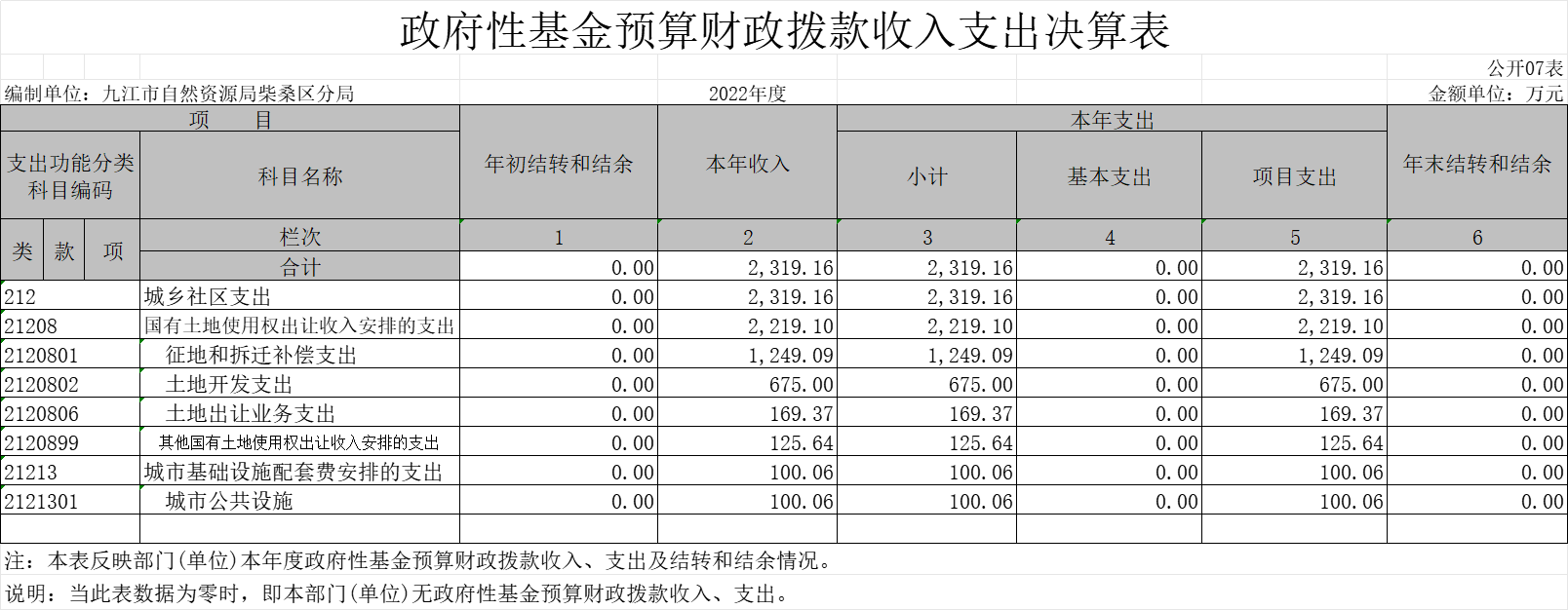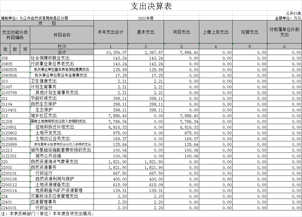 九江市自然资源局柴桑区分局部门2022年度部门决算