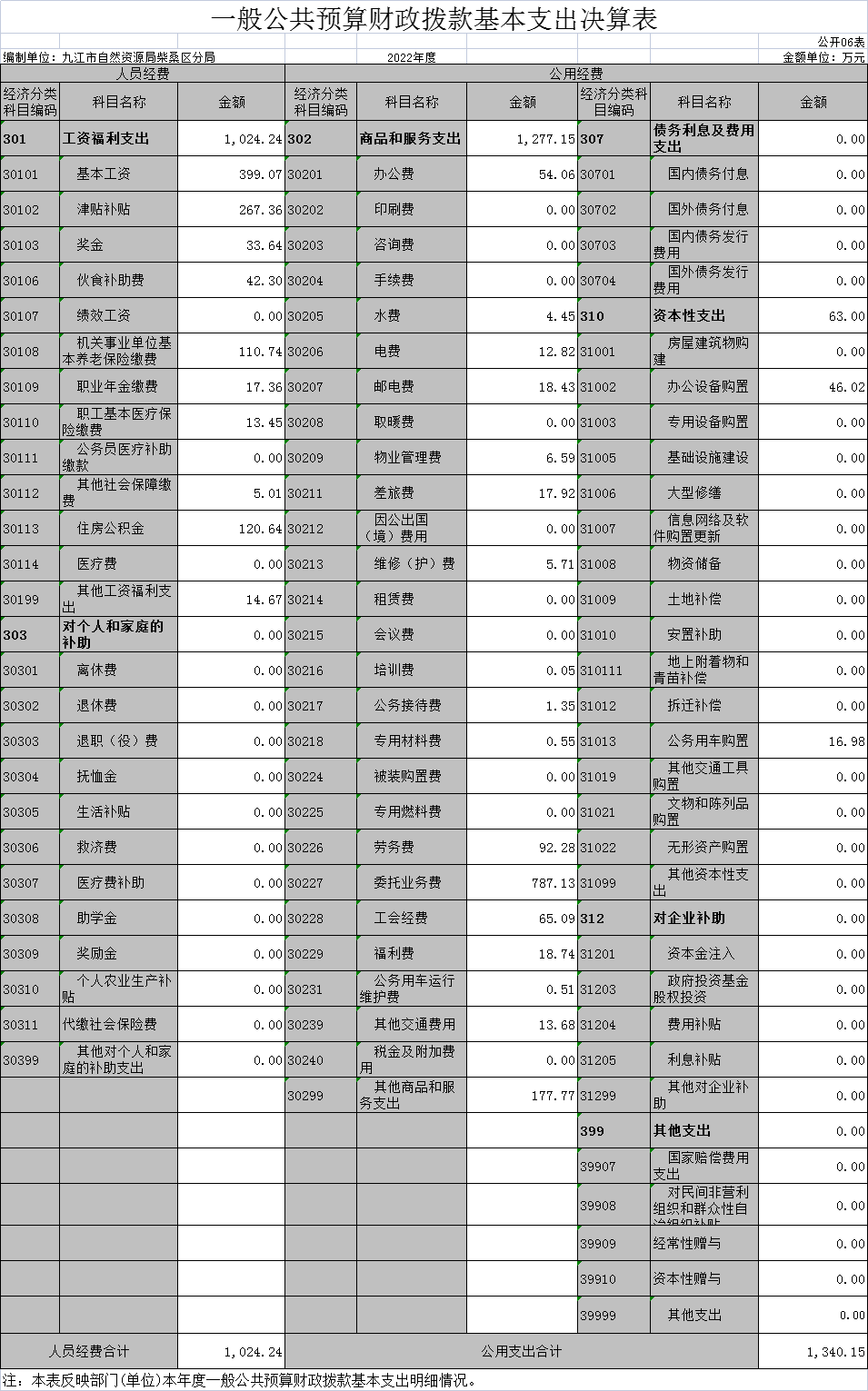 九江市自然资源局柴桑区分局2022年度部门决算(含三公经费)