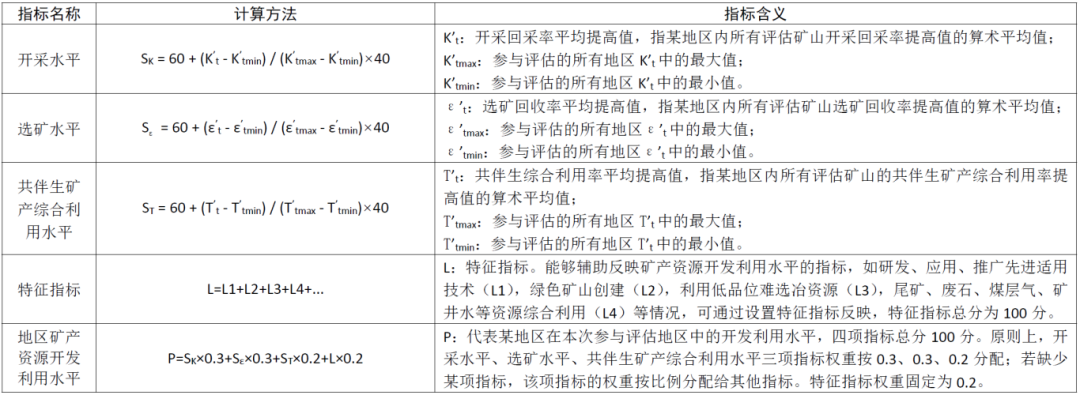 2.该方法适用于部对各省(区、市)、省(区、市)对各县(市、区)矿产资源开发利用水平的评估,要保持评估对象为同一行政级别。