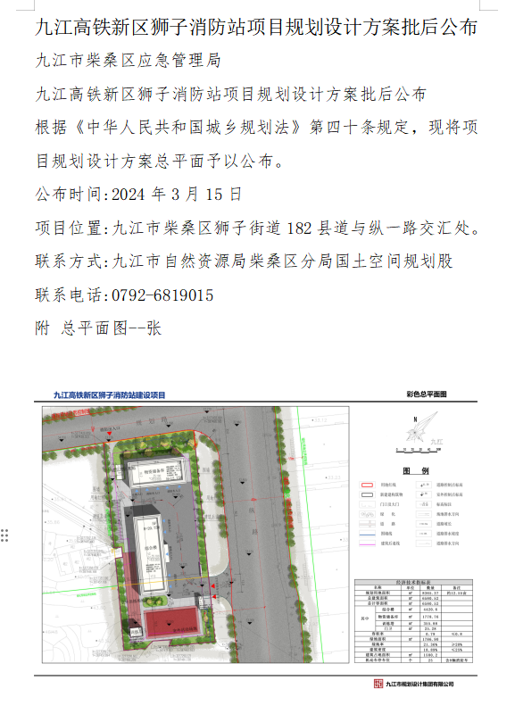 九江高铁新区狮子消防站项目规划设计方案批后公布