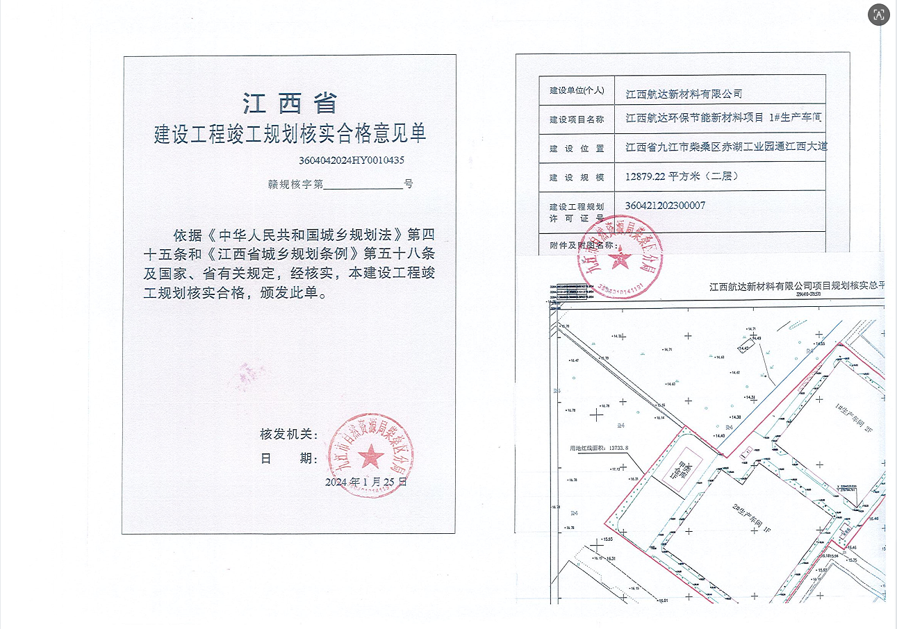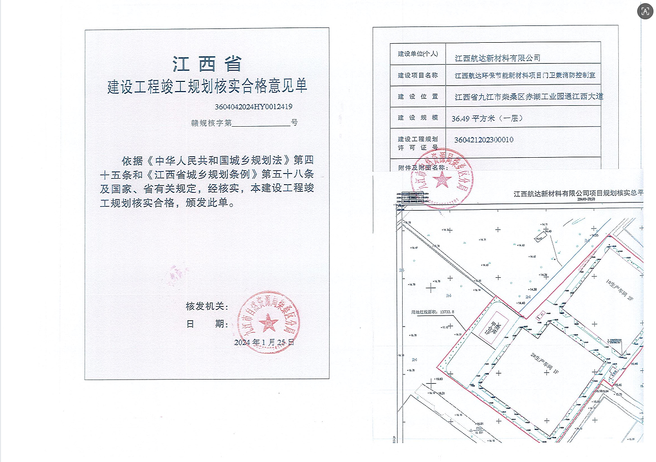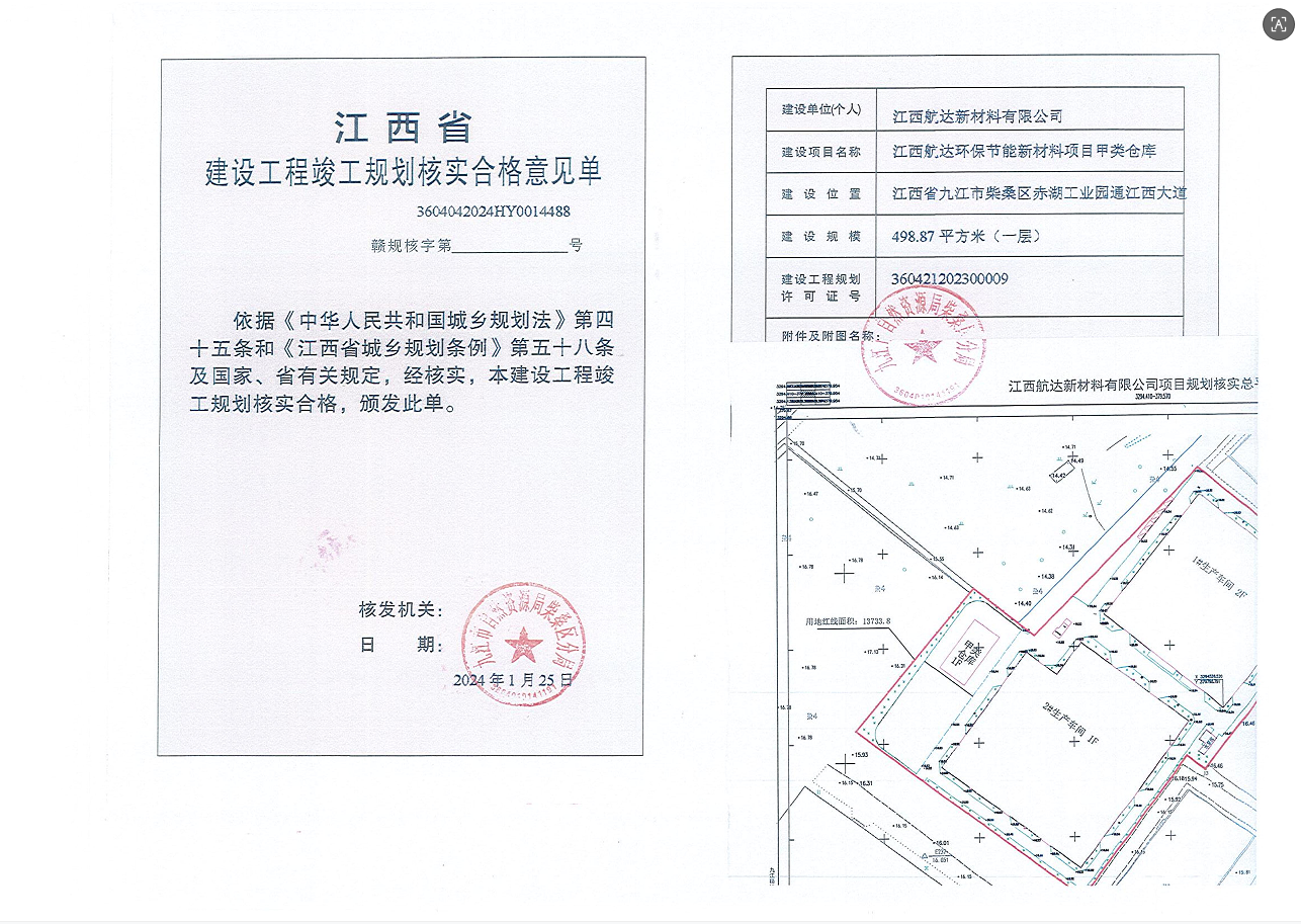 江西航达环保节能新材料项目1#生产车间、2#生产车间、甲类仓库、门卫兼消防控制室、水泵房土地核验与规划核实结果公示