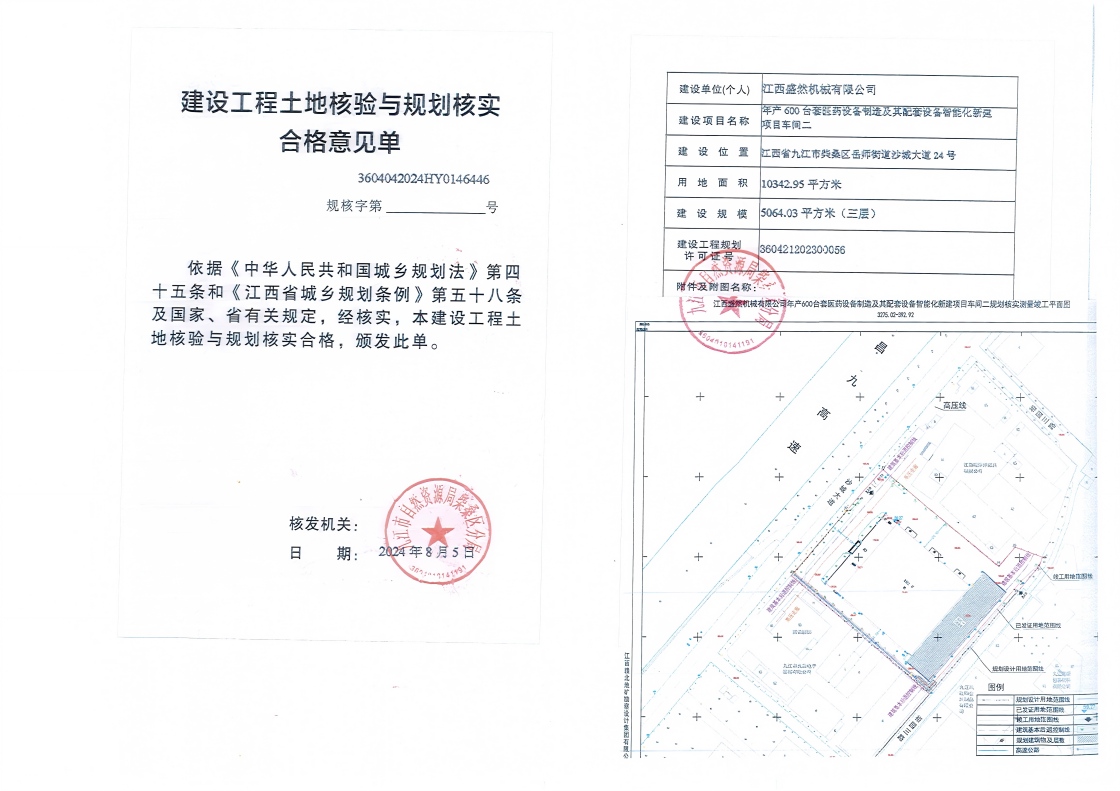 江西盛然机械有限责任公司年产600台套医药设备制造及其配套设备智能化新建项目车间二土地核验与规划核实结果公示