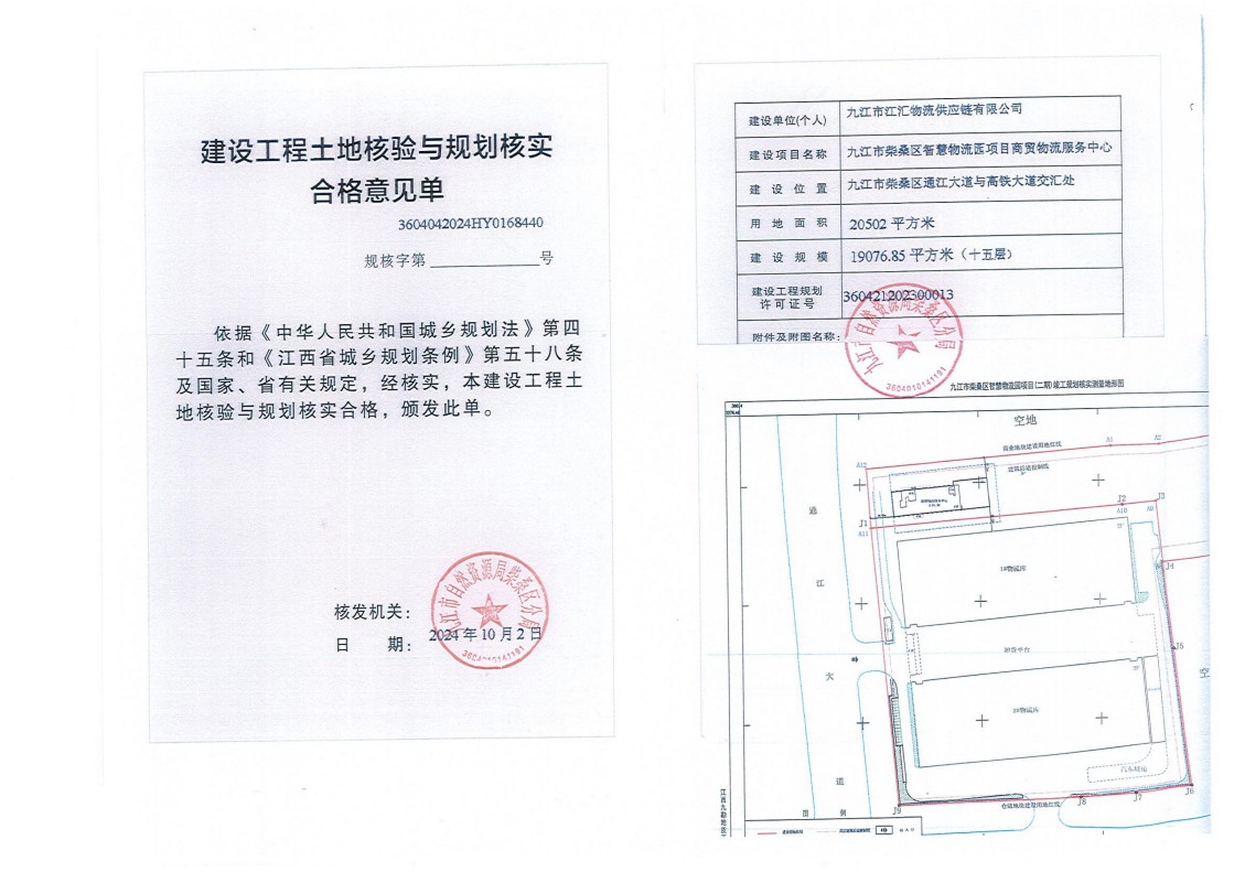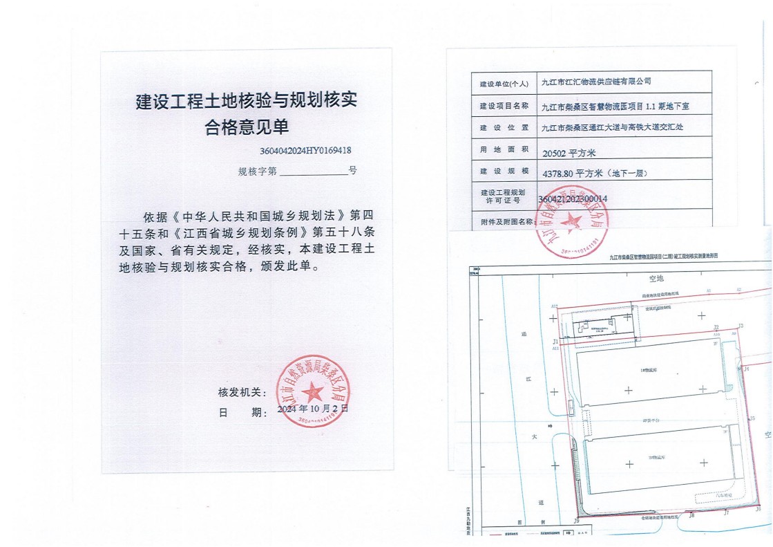 九江市柴桑区智慧物流园项目商贸物流服务中心1.1期地下室土地核验与规划核实结果公示