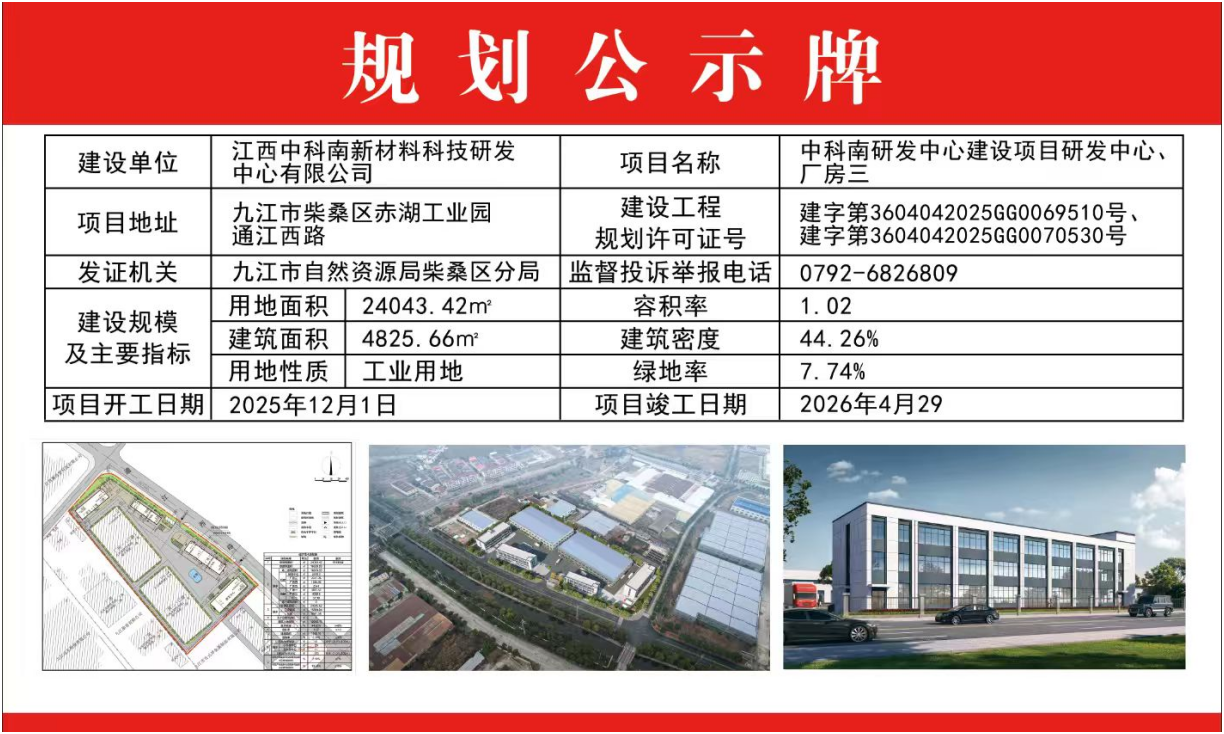 中科南研发中心建设项目研发中心、厂房三批后公示