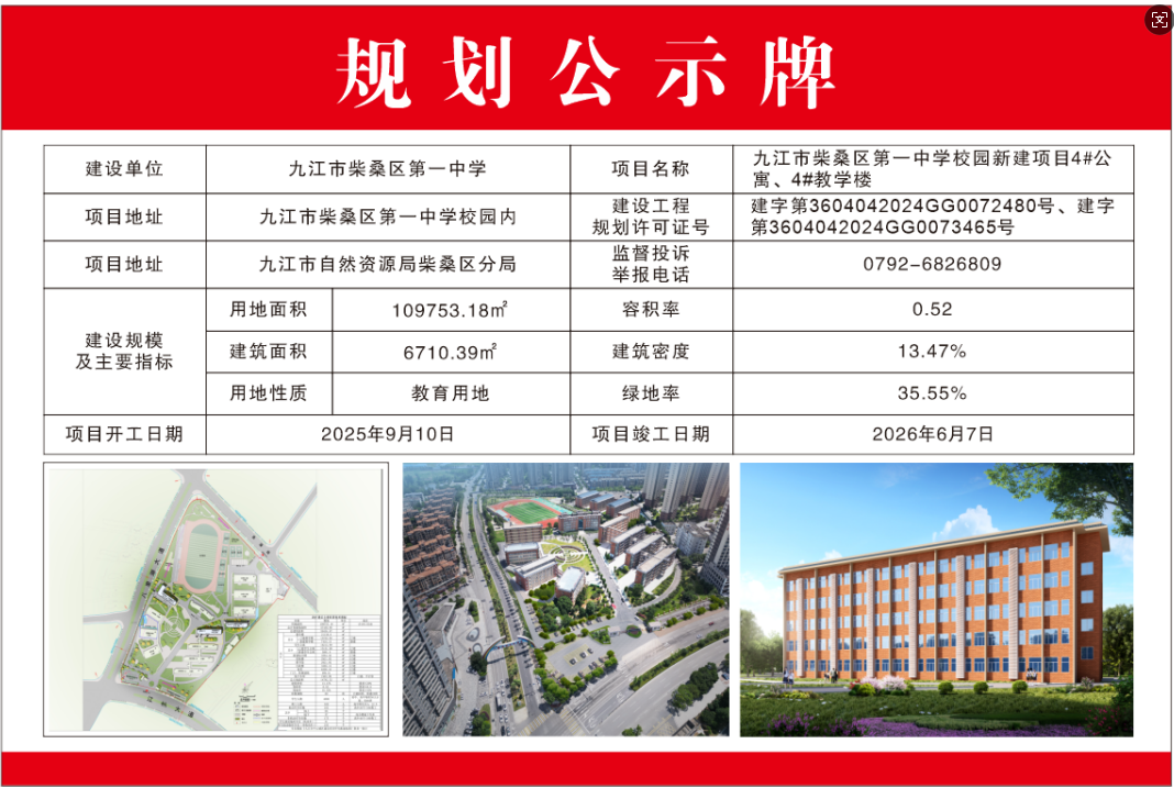 九江市柴桑区第一中学校园新建项目4#公寓、4#教学楼批后公示