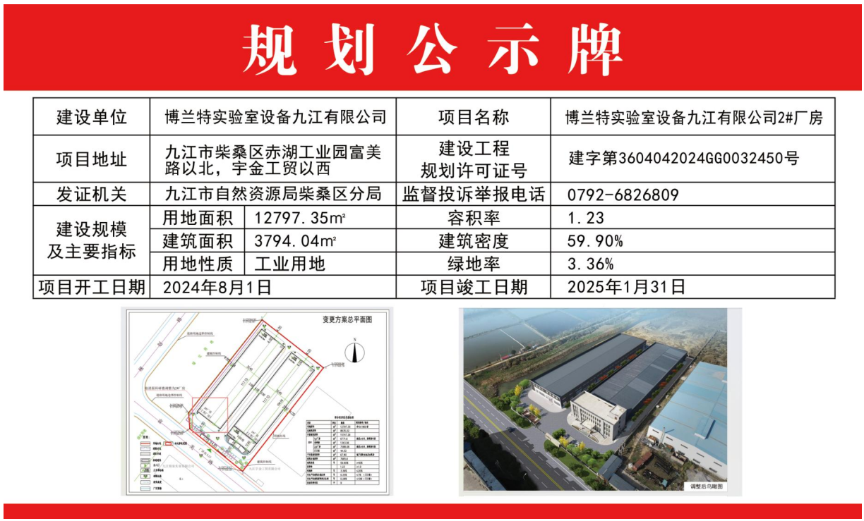 博兰特实验室设备九江有限公司2#厂房批后公示