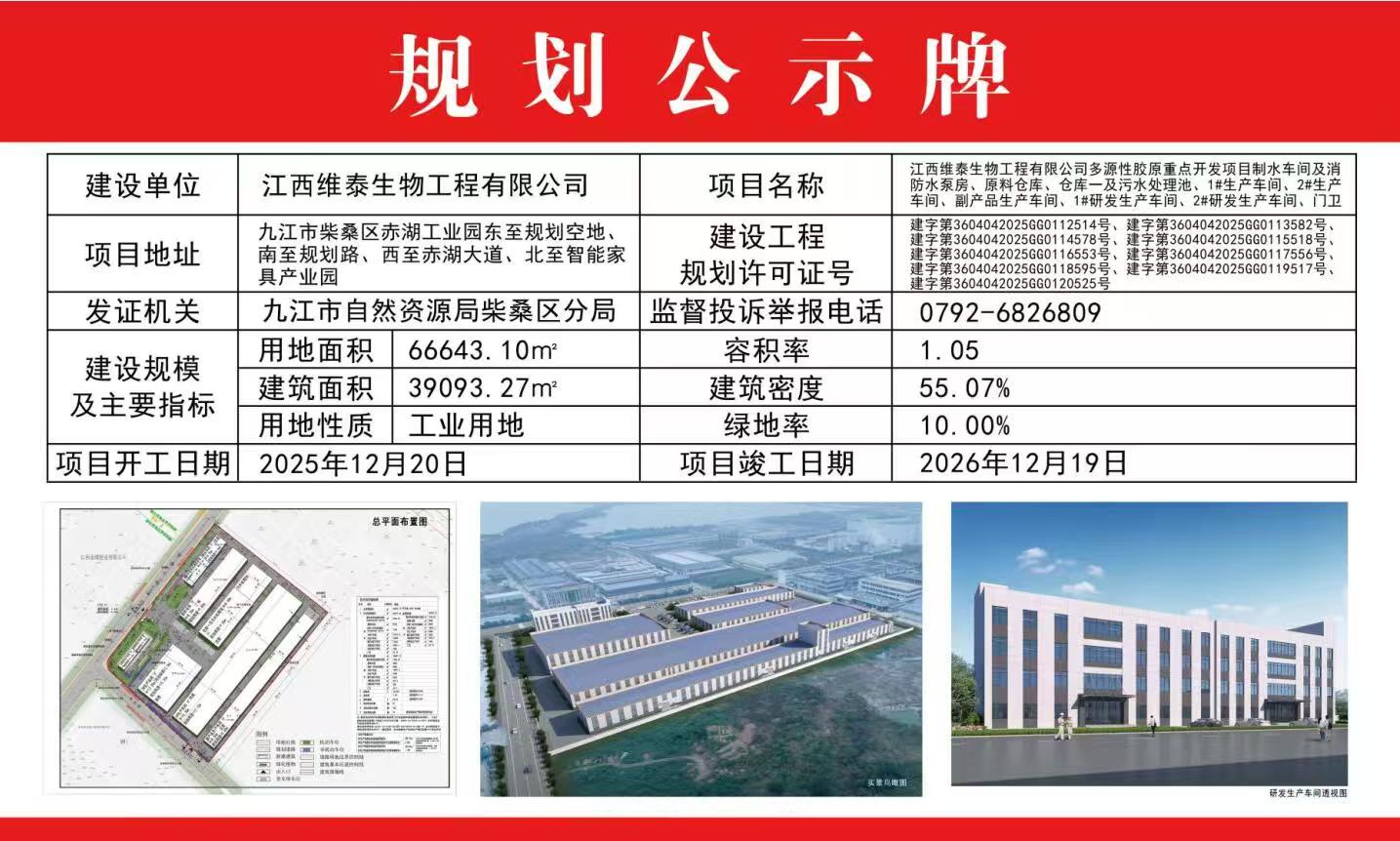 江西维泰生物工程有限公司多源性胶原重点开发项目制水车间及消防水泵房、原料仓库、仓库一及污水处理池、1#生产车间、2#生产车间、副产品生产车间、1#研发生产车间、2#研发生产车间、门卫批后公布