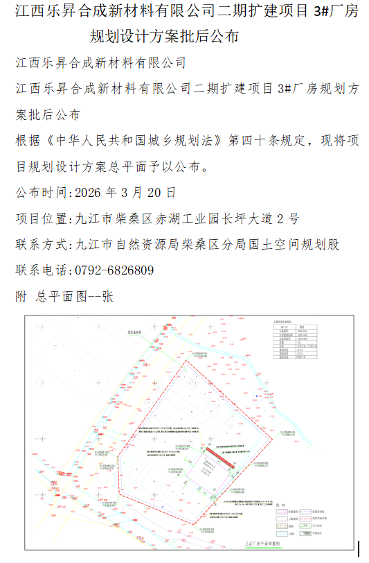 江西乐昇合成新材料有限公司二期扩建3#厂房规划方案批后公布