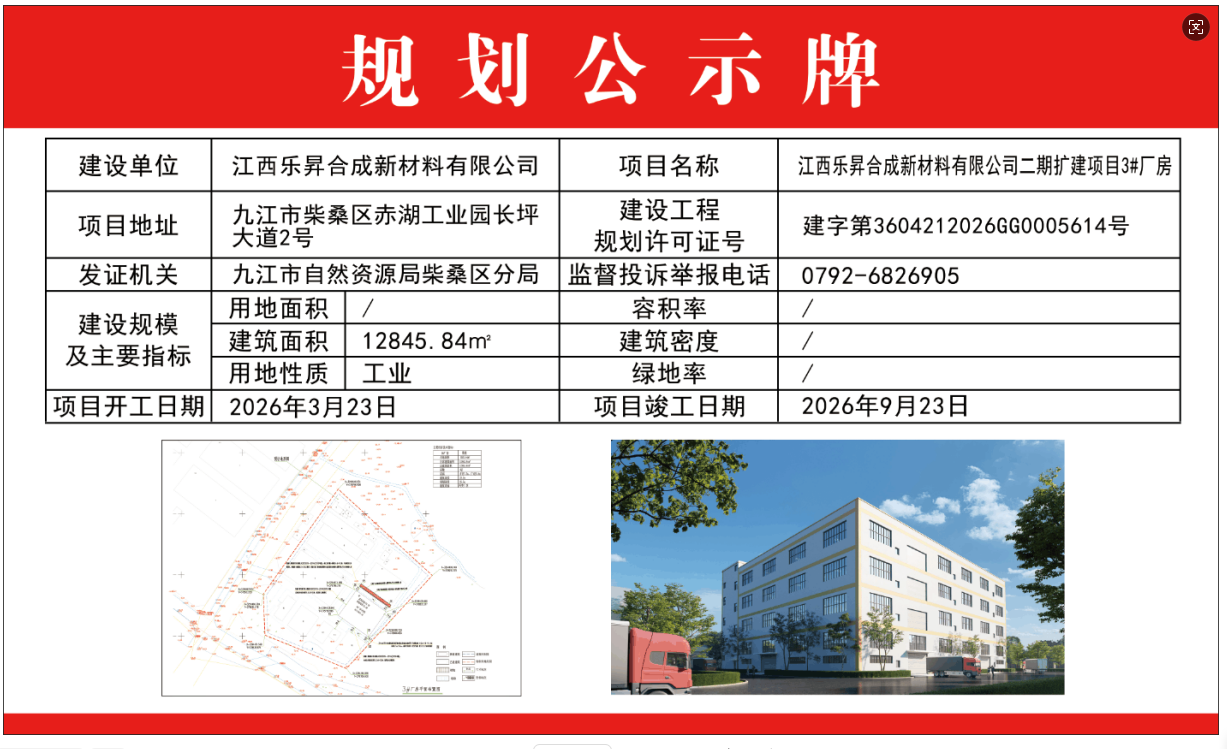 江西乐昇合成新材料有限公司二期扩建3#厂房批后公布