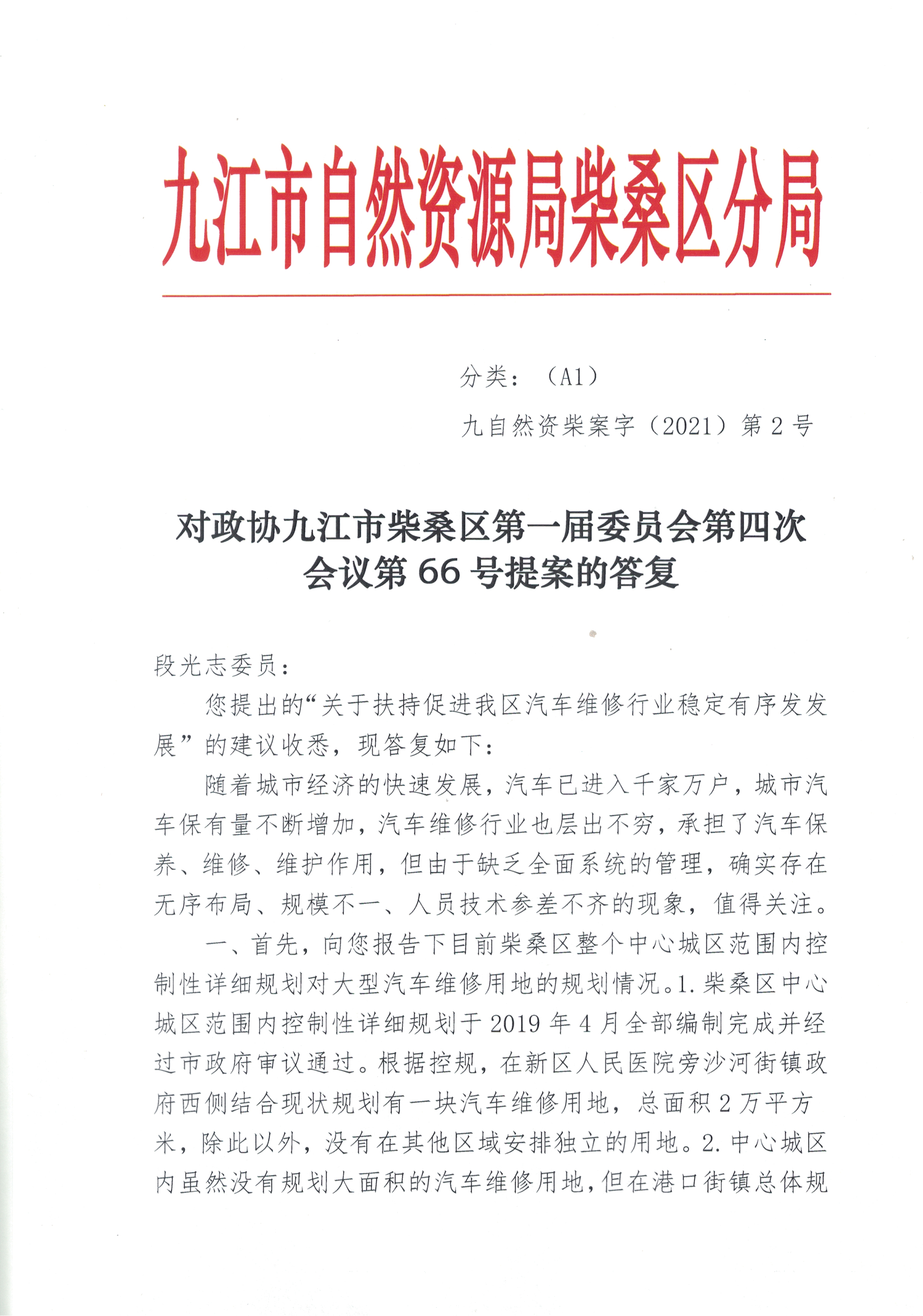 柴桑区自然资源分局对政协九江市柴桑区第一届委员会第四次会议第66号提案的答复