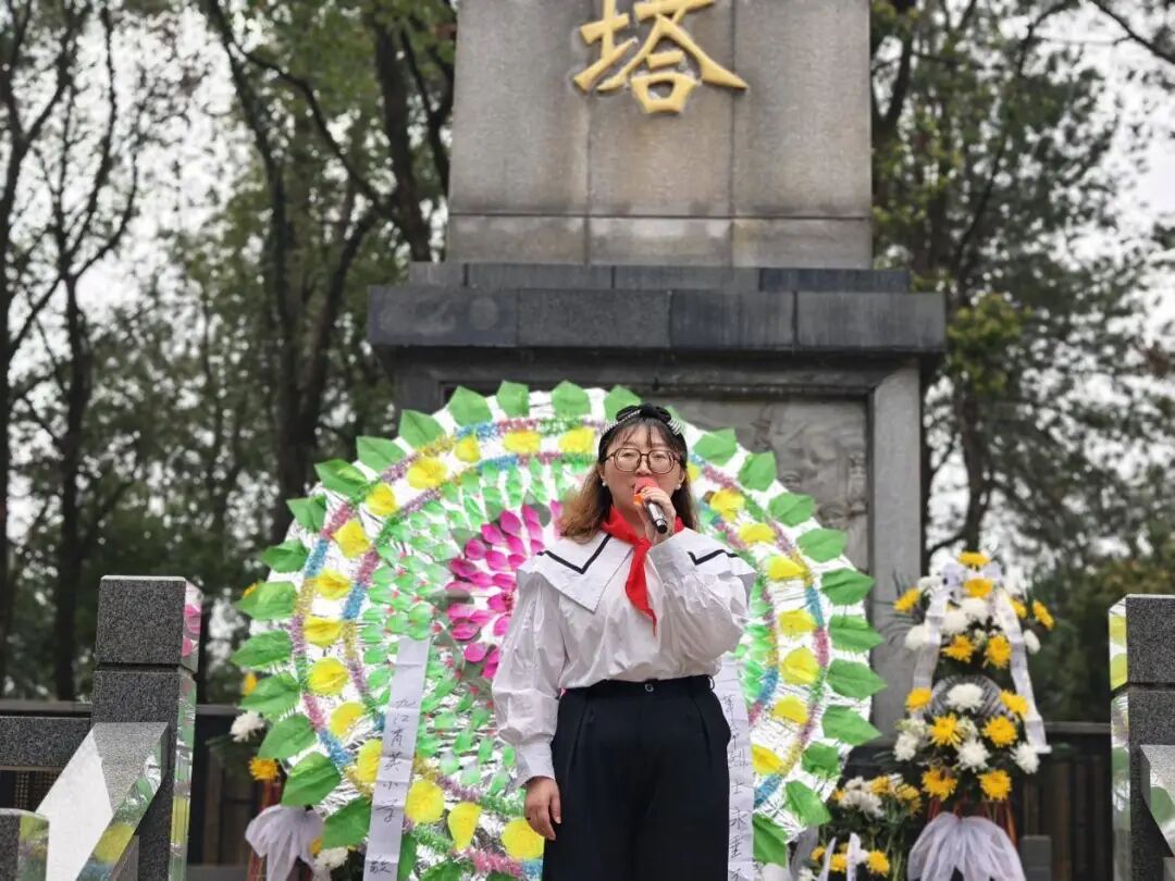 活动现场庄严肃穆,随着德育处乔楠主任的宣布,祭扫仪式正式开始。全体师生向先烈敬献花圈,集体默哀一分钟,深情追思革命先辈的英勇事迹。随后,齐唱《中国少年先锋队队歌》,嘹亮的歌声传递着少年儿童的赤诚与担当。学生代表熊子豪、教师代表聂方方先后发言,抒发对先烈的崇敬之情;蔡锦灼校长发表寄语。蔡校长勉励同学们继承先烈遗志,勤奋学习,勇担时代使命。接着,在乔老师的带领下,全体少先队员举起右手,庄严呼号:“准备着,为共产主义事业而奋斗!”“时刻准备着!”铿锵誓言响彻云霄。最后,师生们绕着烈士墓一周,敬献清明花,在纪念塔后面巨大的撰刻着烈士英名的幕墙前,久久不愿离去……