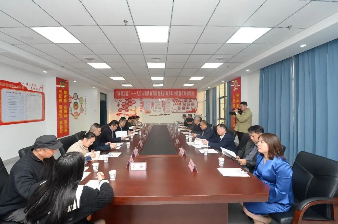 (文/尹建森 图/李训刚)11月23日,市政协副主席王丰鹏率队开展“双聚双建”—九江市政协教育界别委员助力职业教育发展视察活动,市政协教科卫体委员会主任查友生,区政协党组书记、主席柳鸿斌,区委常委、宣传部长李三荣,区政协副主席朱海松参加活动。学校党总支书记熊伟、校长邱纪烈等陪同。