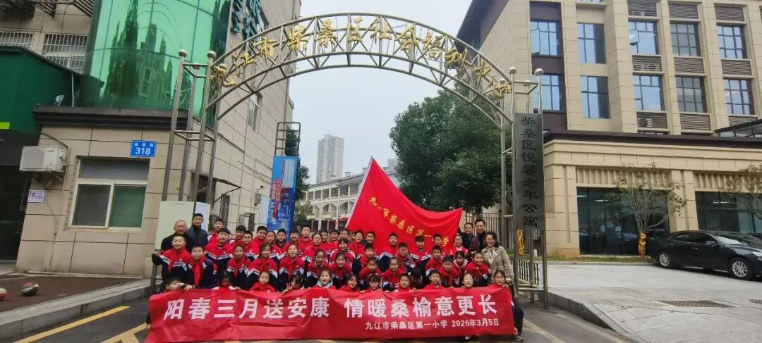 3月5日,在全国学雷锋纪念日之际,九江市柴桑区第一小学组织师生代表走进九江市柴桑区社会福利中心,开展“阳春三月送安康 ,情暖桑榆意更长”志愿服务活动,用实际行动传承和弘扬雷锋精神,为福利中心的老人们送去春日的温暖与关怀。