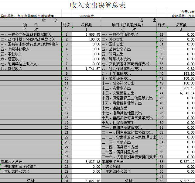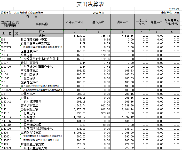 本部门2022年度支出总计5827.12万元,其中本年支出合计5827.12万元,较2021年减少2174.47万元,下降27%,主要原因是:农村公路建设项目减少;年末结转和结余0万元,较2021年增加(减少)0万元,增长(下降)0%,主要原因是:合理安排资金支出,年末无结转和结余。
